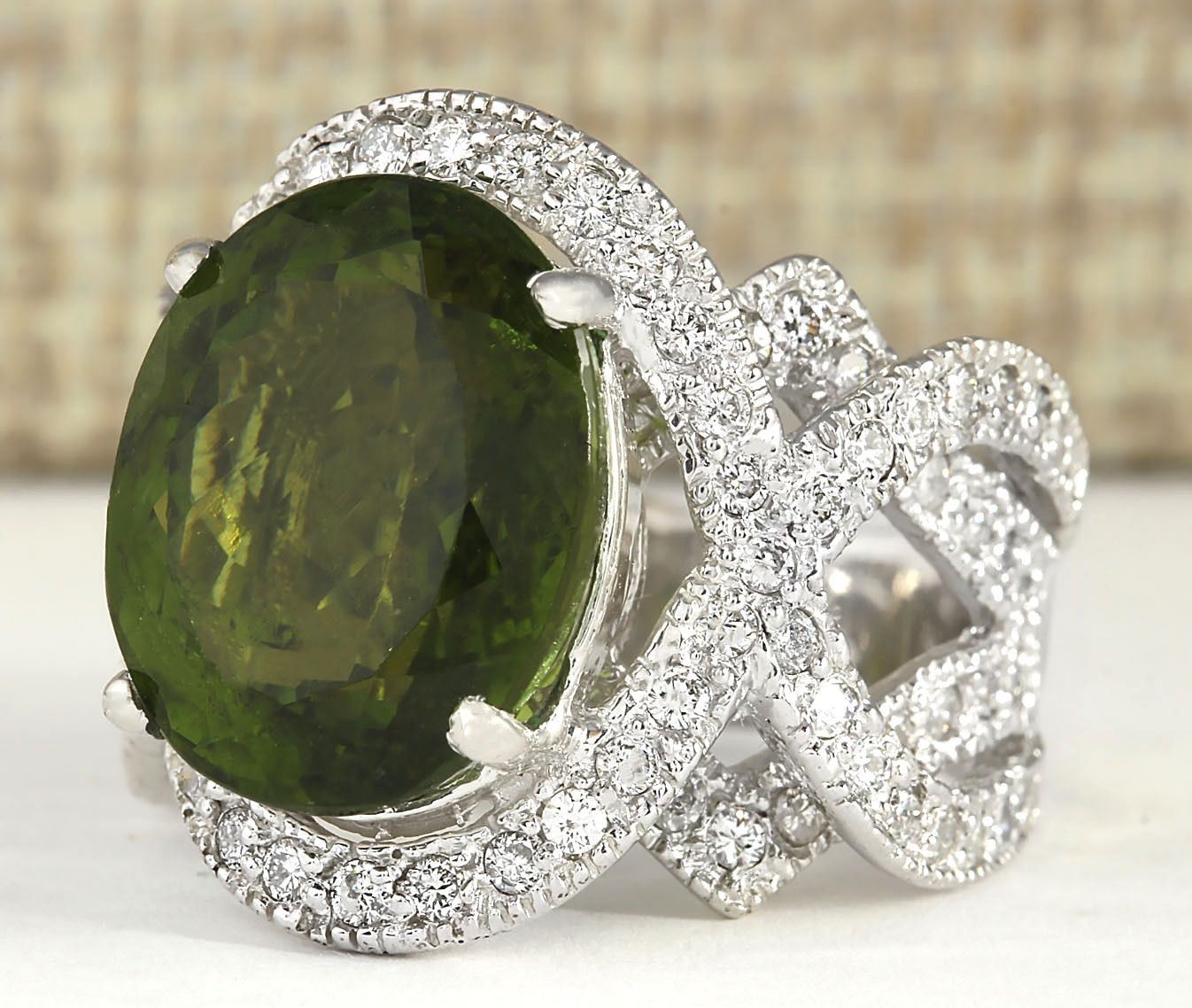 12.80 CTW Natural Green Tourmaline And Diamond Ring 18K Solid White Gold