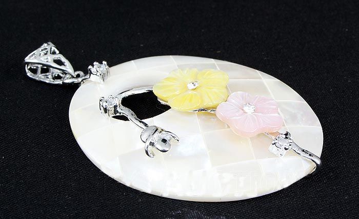 12.81GRAMS WHITE MOTHER OF PEARL SILVER OVAL PENDANT **|**|** 1.77X1.40 INCHES WHITE MOTHER OF PEARL SILVER OVAL PENDANT WITH FLOWER DESIGN ; MSRP: $100