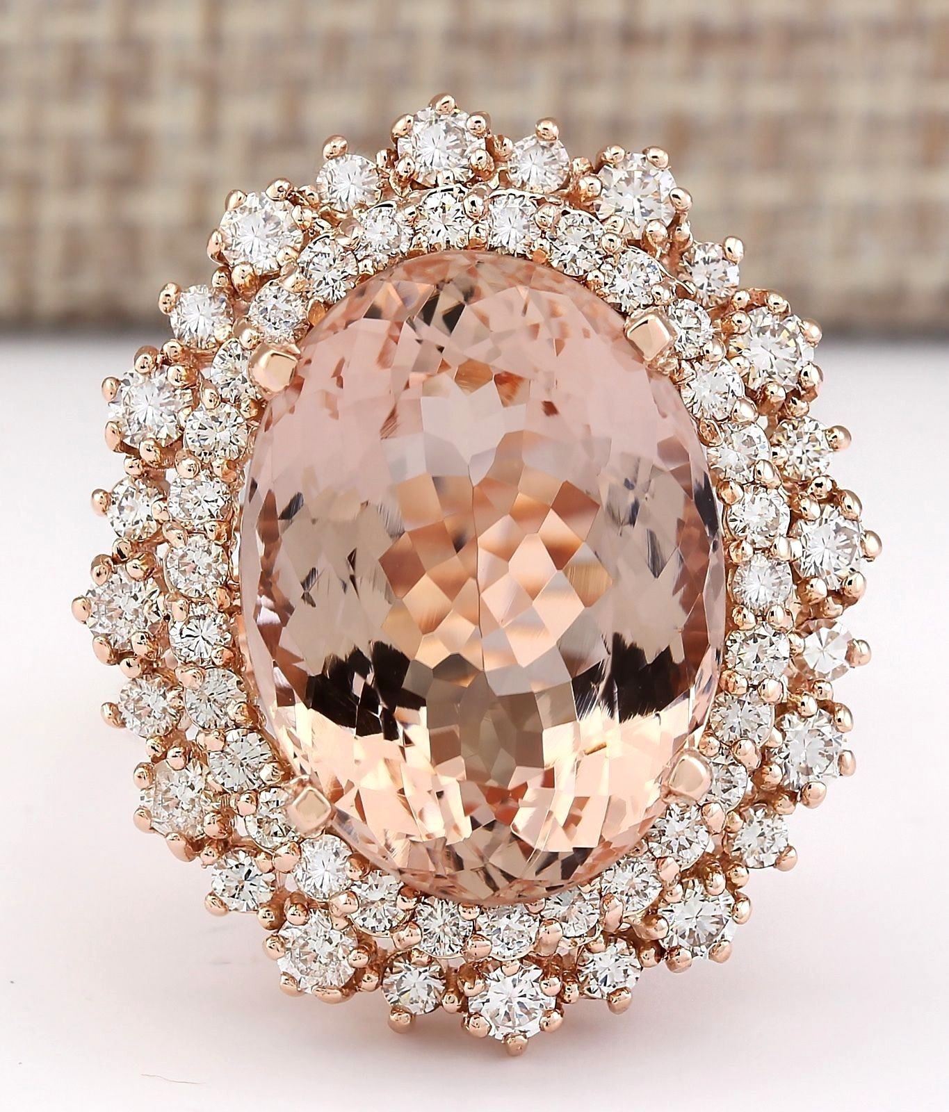 12.82 CTW Natural Morganite And Diamond Ring In 18K Rose Gold