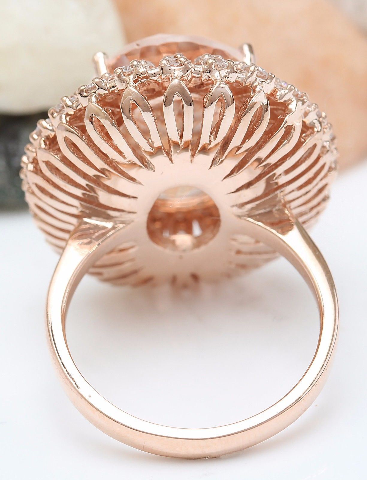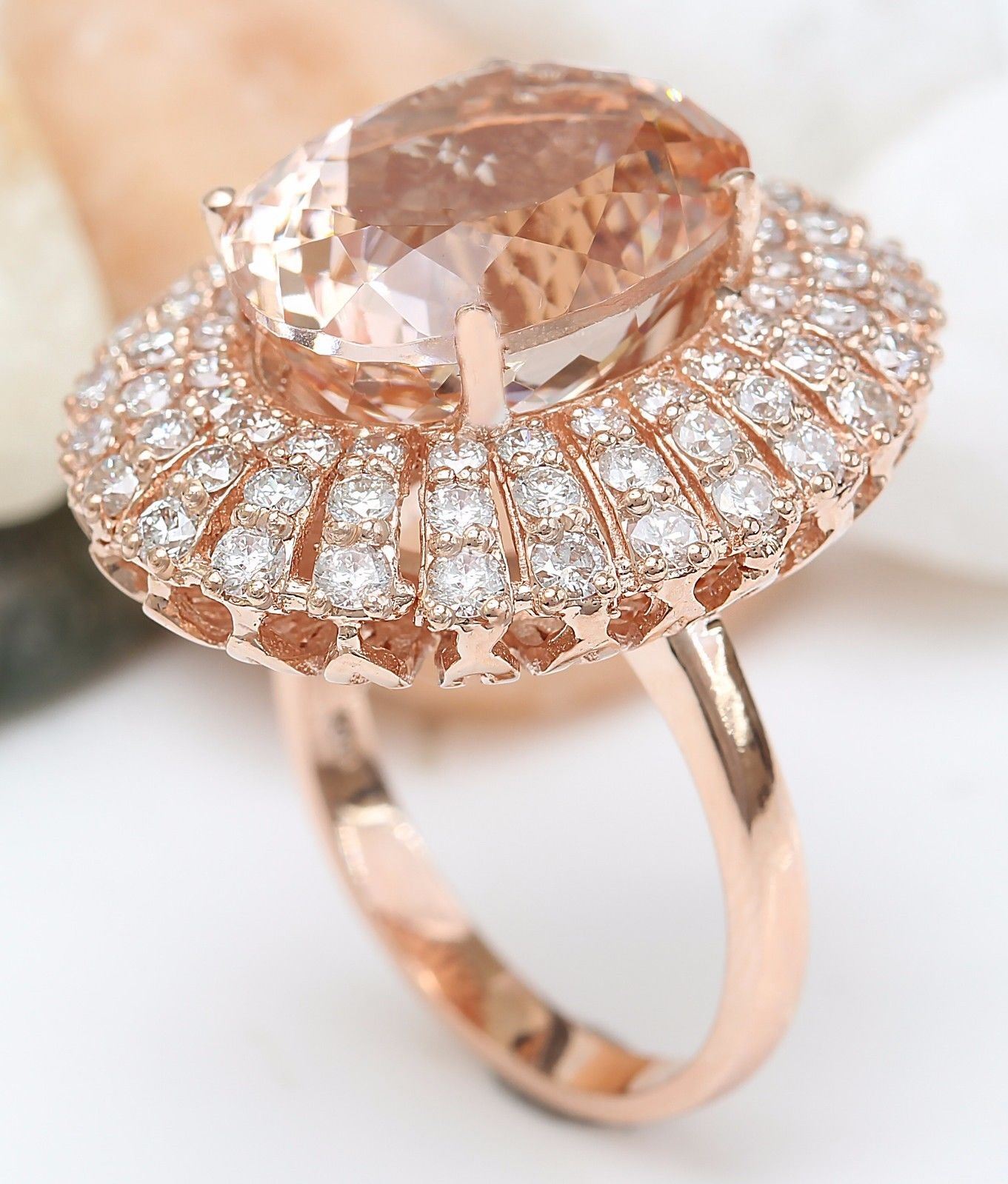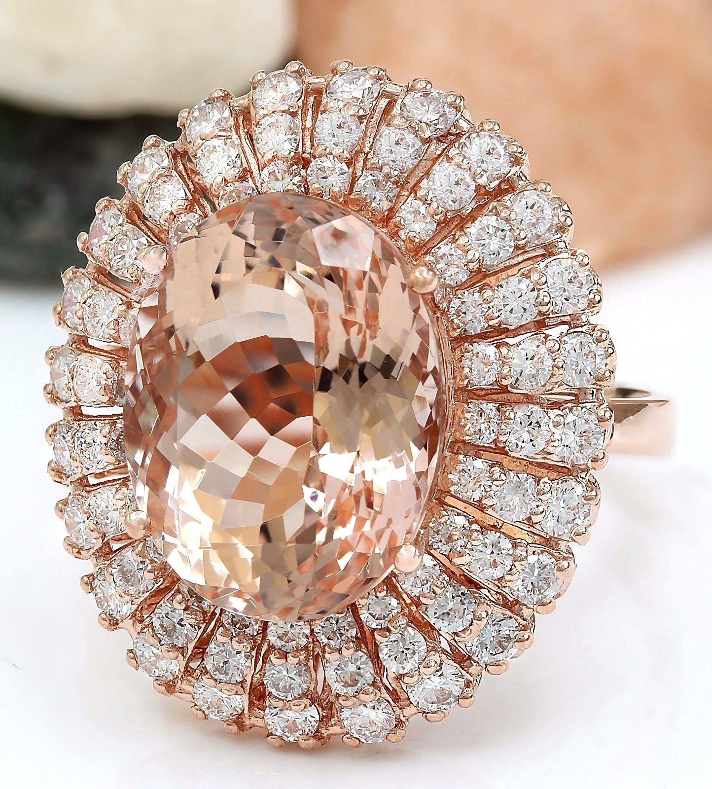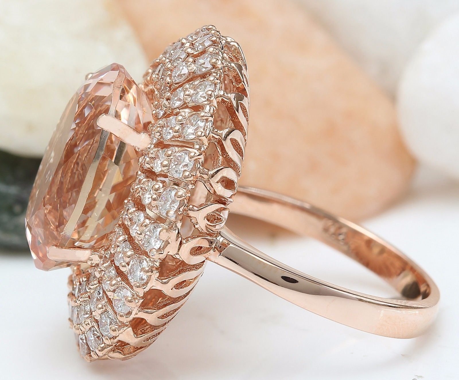 12.85 Carat Natural Morganite 18K Solid Rose Gold Diamond Ring