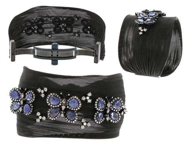 SAPPHIRE, TANZANITE AND DIAMOND MESH BRACELET/**/Diamond 1 CTW:3.63/Diamond Color & Clarity:J-L/I1-I2(Single Cut)/Diamond Count 2:/Diamond 2 CTW:/Diamond Color & Clarity:/Gemstone Count1:/Gemstone 1 CTW:9.22/Gemstone Count 2:/Gemstone 2 CTW:/Metal Type 1 Gold:18k Yellow Gold /Gold Gram Weight:0.64/Metal Type 2:over 0.925 Sterling Silver/Silver Gram Weight:9.33/Gross Weight: 47.16