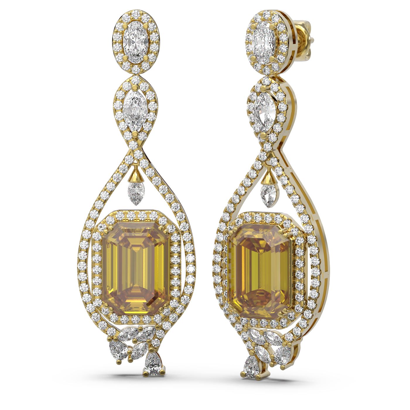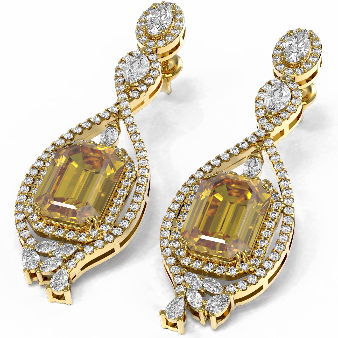 REF-470A2N - SKU: 60478 ---- 12.86 ctw Canary Citrine & Diamond Earrings 18K Yellow Gold