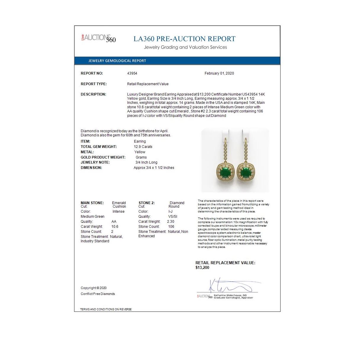 REF-266F9M - SKU: 43954 ---- 12.9 ctw Certified Emerald & Diamond Victorian Earrings 14K Yellow Gold