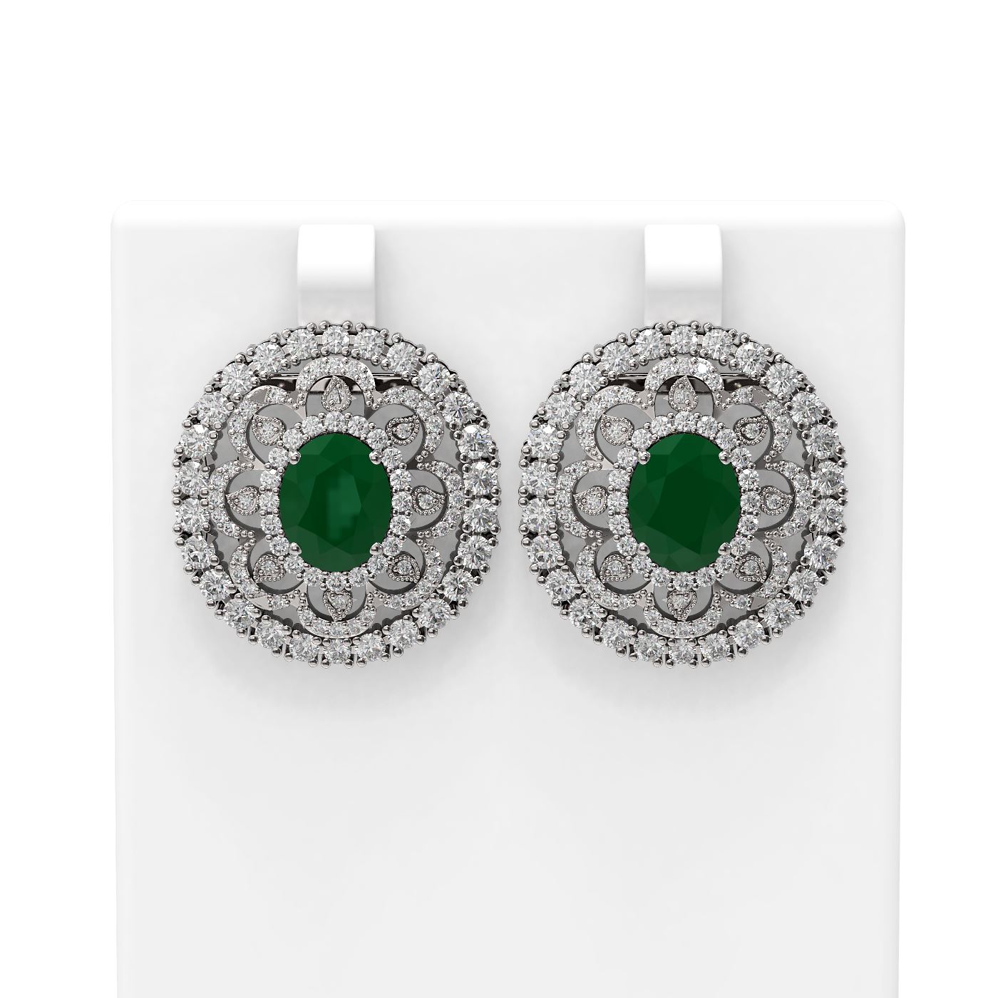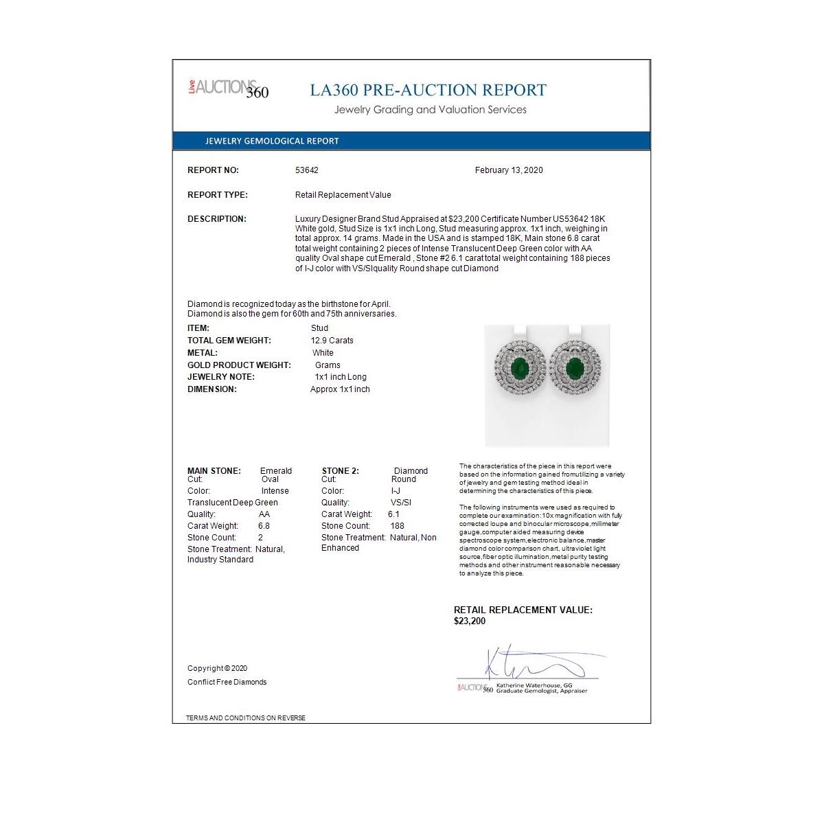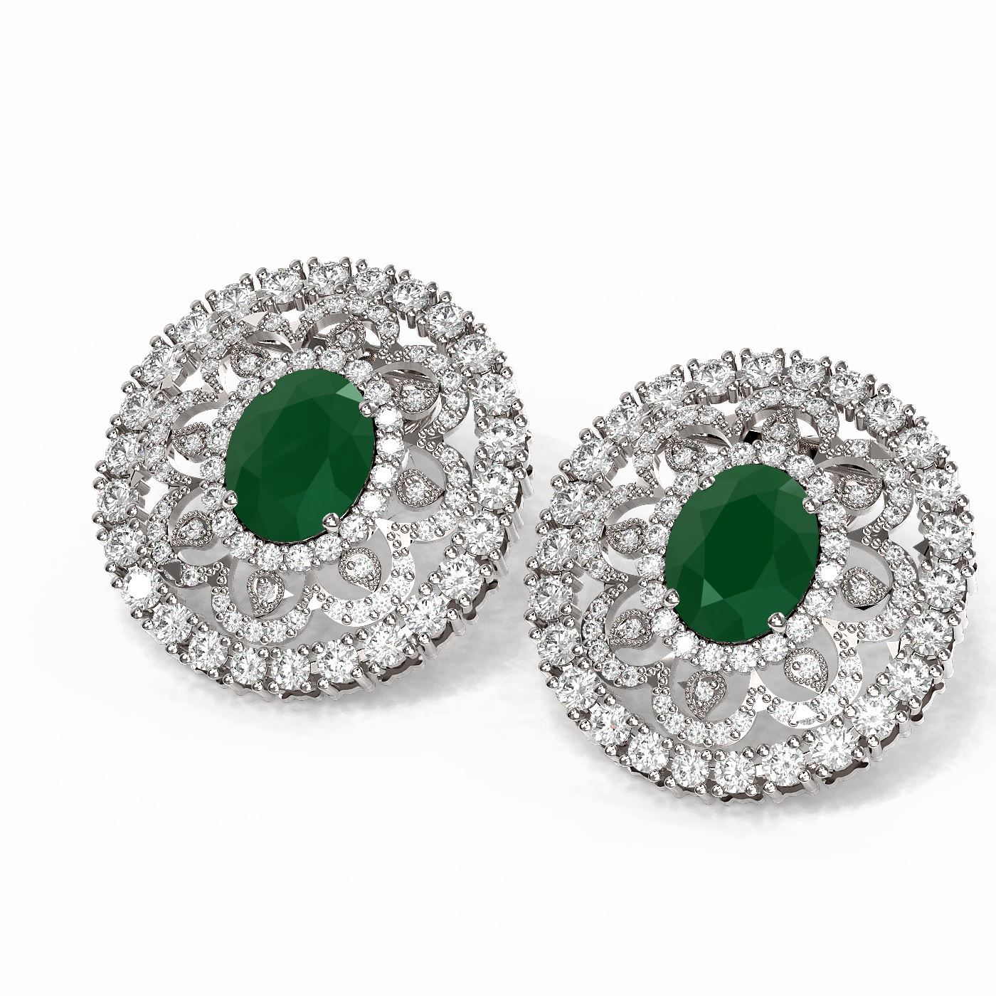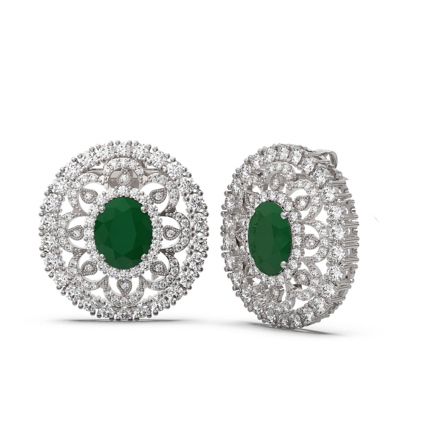 REF-527W3H - SKU: 53642 ---- 12.9 ctw Emerald & Diamond Earrings 18K White Gold