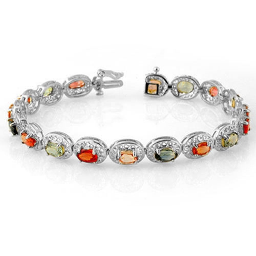 REF-154F2M - SKU: 11707 ---- 12.90 ctw Multi-color Sapphire Bracelet 18k White Gold
