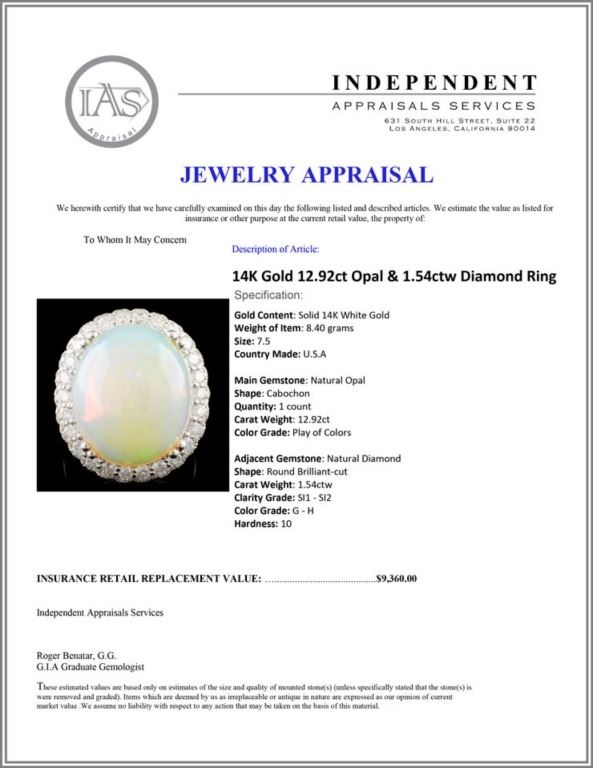 Regarding Appraised Jewelry and Loose Stones - Auctionfarm sends them out to a third party for Retail Replacement Value Appraisals, which are the most common. These types of evaluations are written for insurance needs. This would be the cost to replace the jewelry with an item of equal quality and kind, considered to be the current market price or the replacement value. This type of appraisal is done to protect you in the event of damage or loss of a valuable item. Our appraisals are conducted by independent 3rd Party appraisal firms that utilizes Certified GIA Gemologist. Appraisals should be used for verification of gemstone and/or metal weight, size, and grade only, not actual value. Appraisal value should be considered for insurance purposes only, not actual value, as price varies greatly from retail locations thru out the world. Items should not be purchased with the expectation to resell for appraisal price, or for profit.