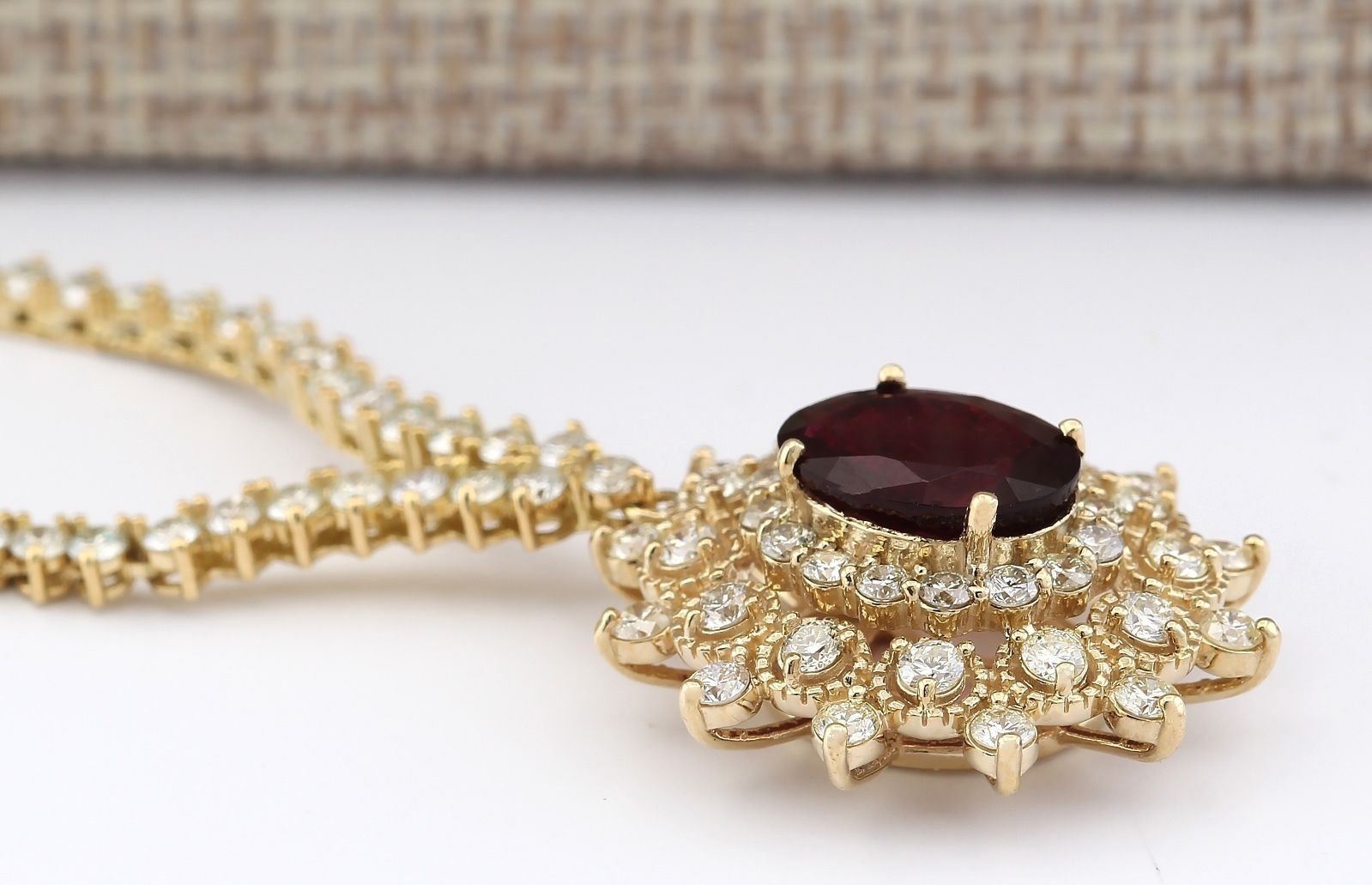 12.97 CTW Natural Tourmaline And Diamond Necklace In 14k Yellow Gold