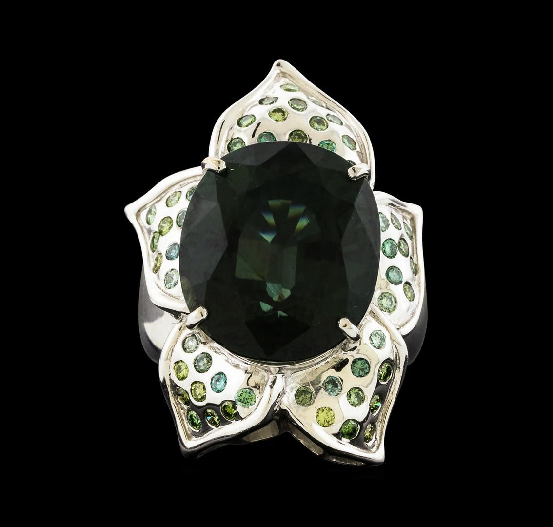 One ring featuring: 18KT White Gold containing Tourmaline with a total weight of 12.97ct and Diamonds with a total weight of 0.78ct. Total Weight of Ring: 15.4 grams.
