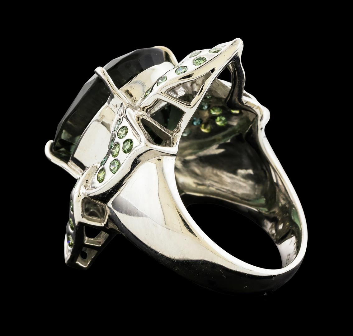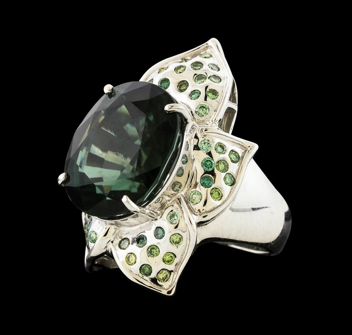 One ring featuring: 18KT White Gold containing Tourmaline with a total weight of 12.97ct and Diamonds with a total weight of 0.78ct. Total Weight of Ring: 15.4 grams.