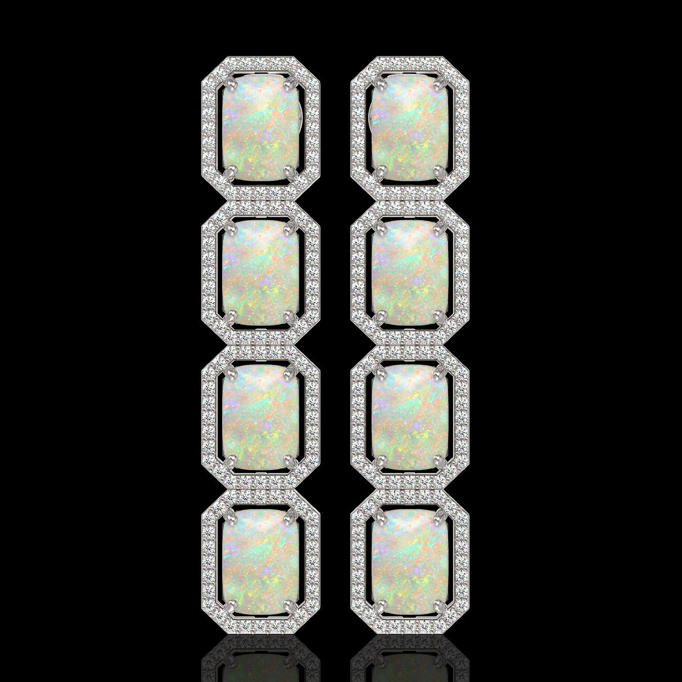 REF-236W4H - SKU: 41585 ---- 12.99 ctw Opal & Diamond Micro Pave Halo Earrings 10k White Gold