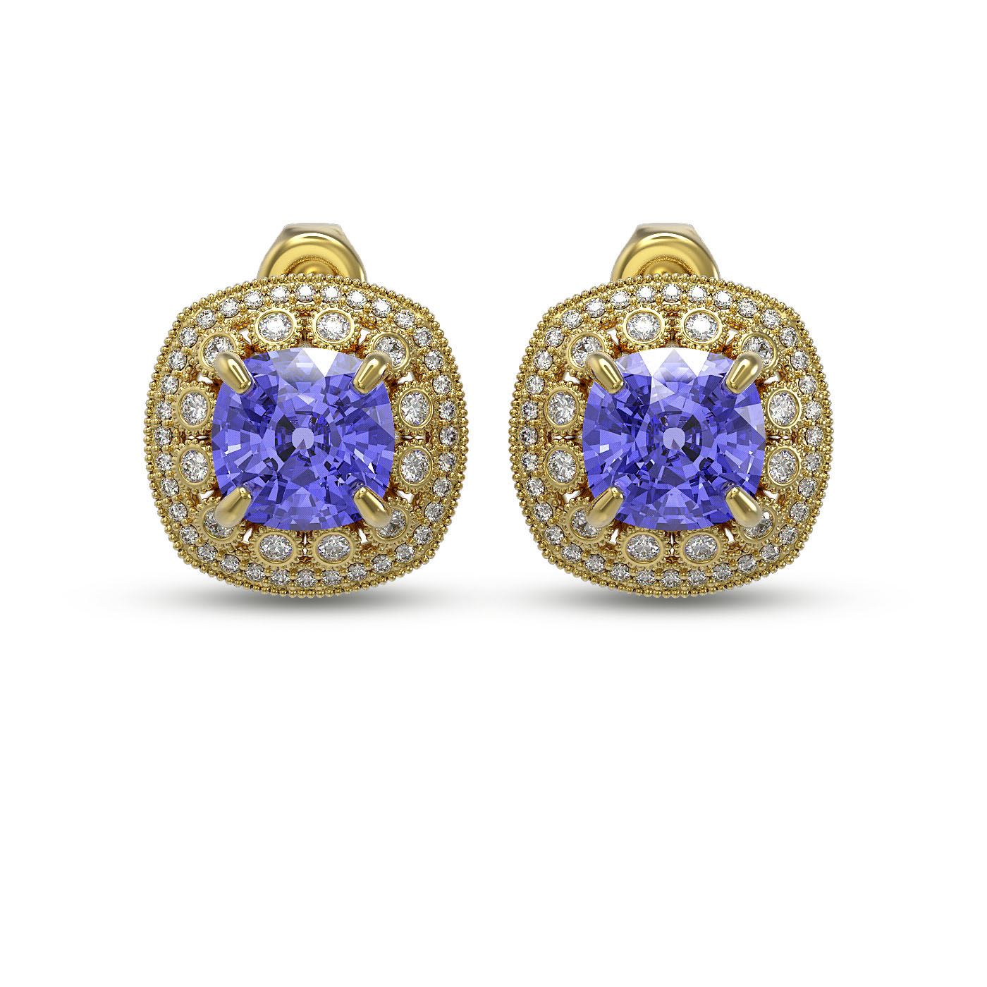 SKU: 43987 ---- 12.99 ctw Tanzanite & Diamond Victorian Earrings 14K Yellow Gold