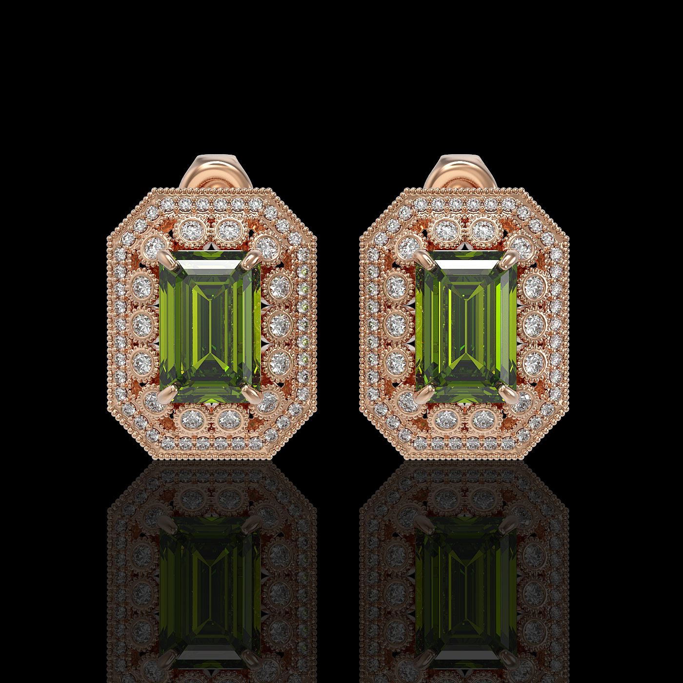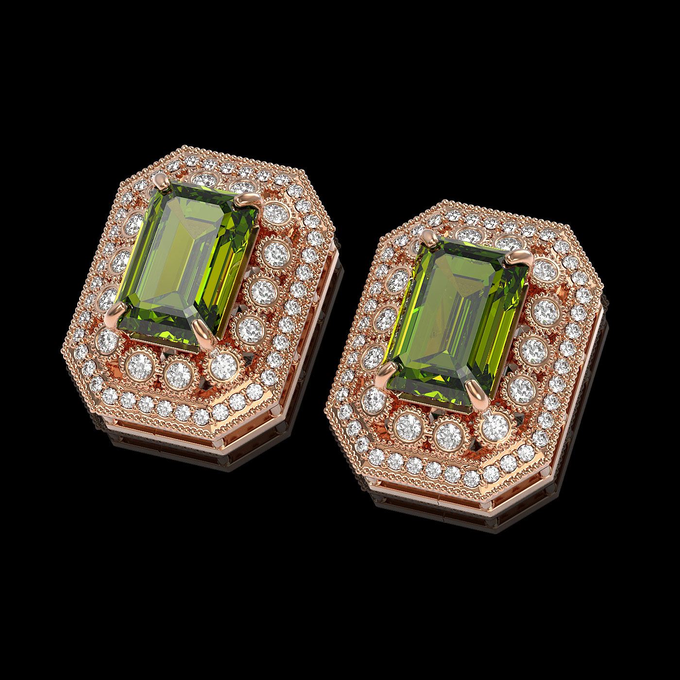 REF-346R2K - SKU: 43431 ---- 12.99 ctw Tourmaline & Diamond Victorian Earrings 14K Rose Gold