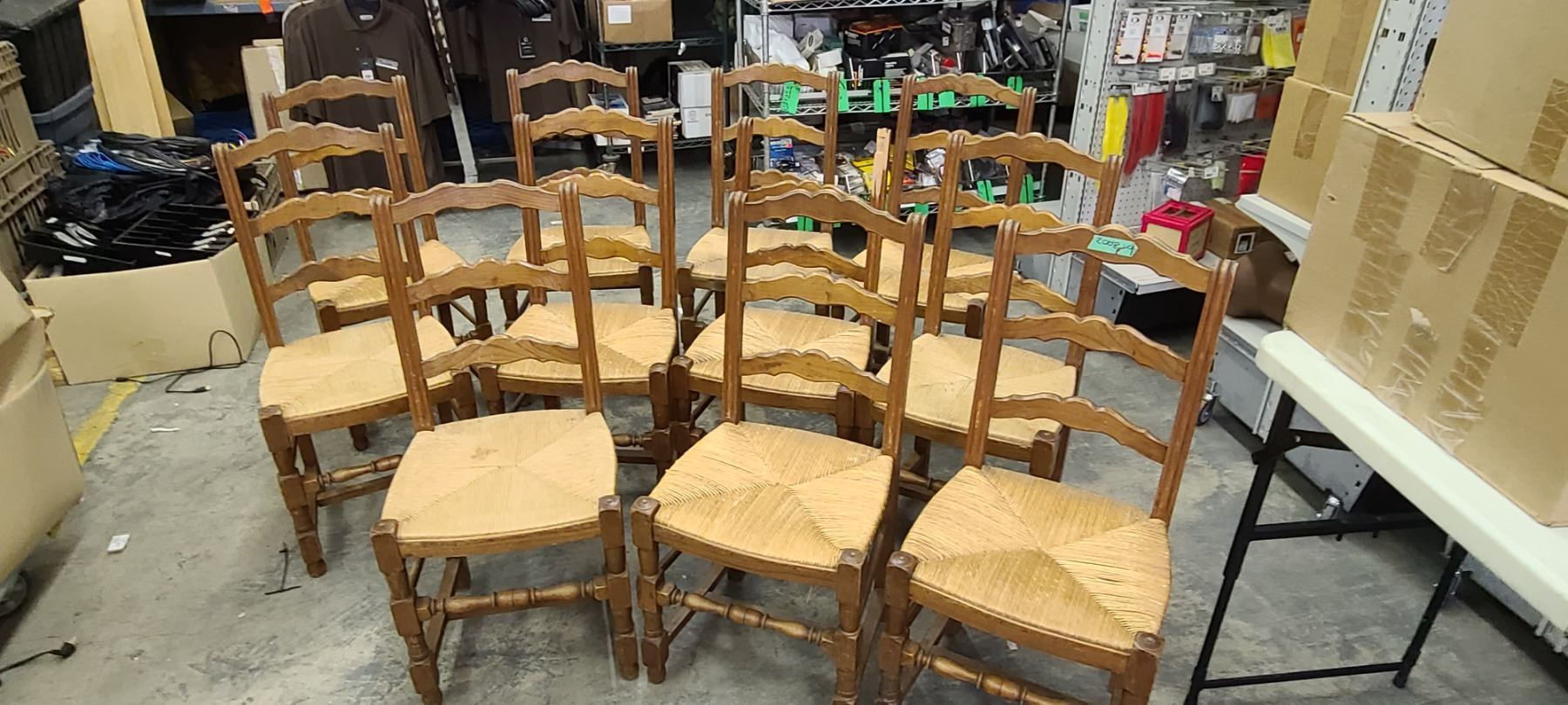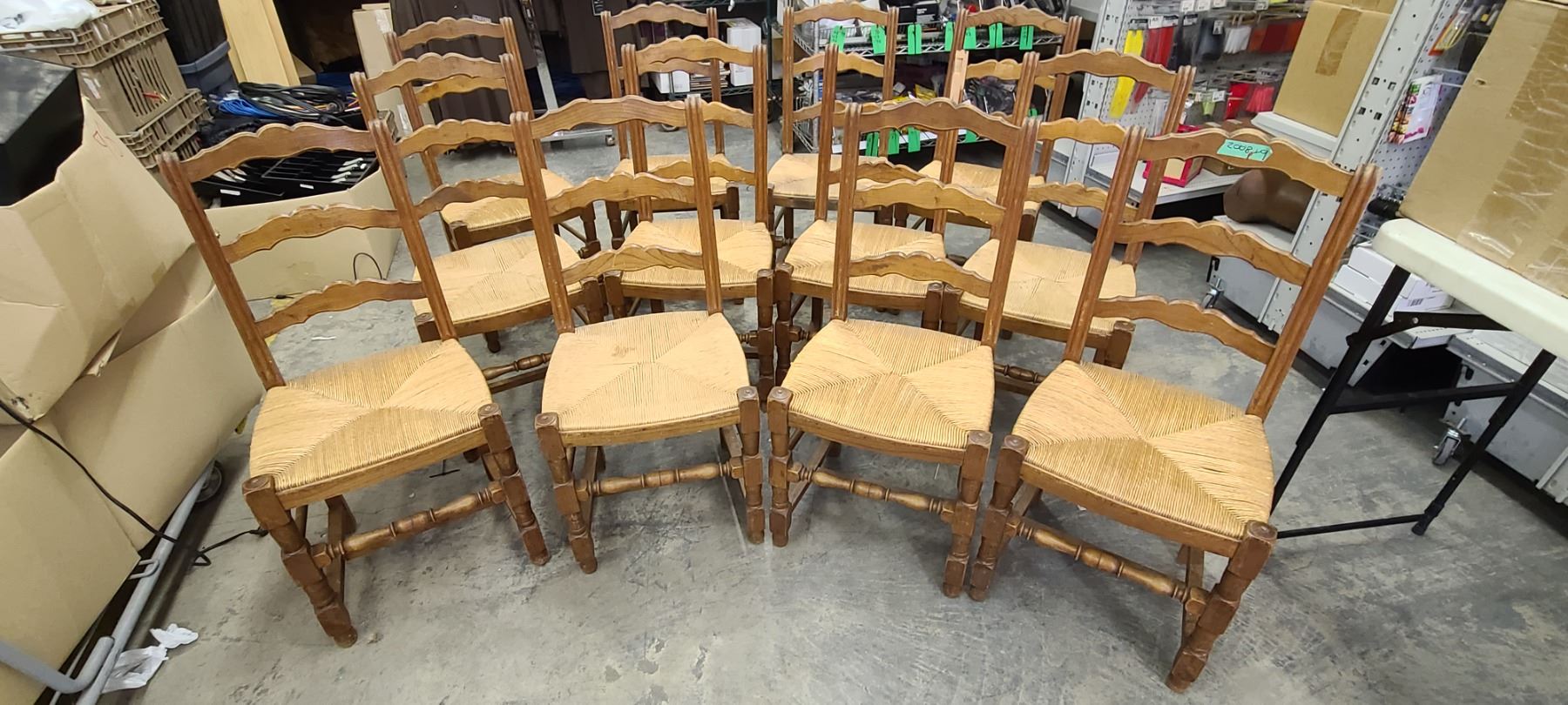 12 ANTIQUE FRENCH CHAIRS - ESTIMATED TO BE 80 TO 90 YEARS OLD