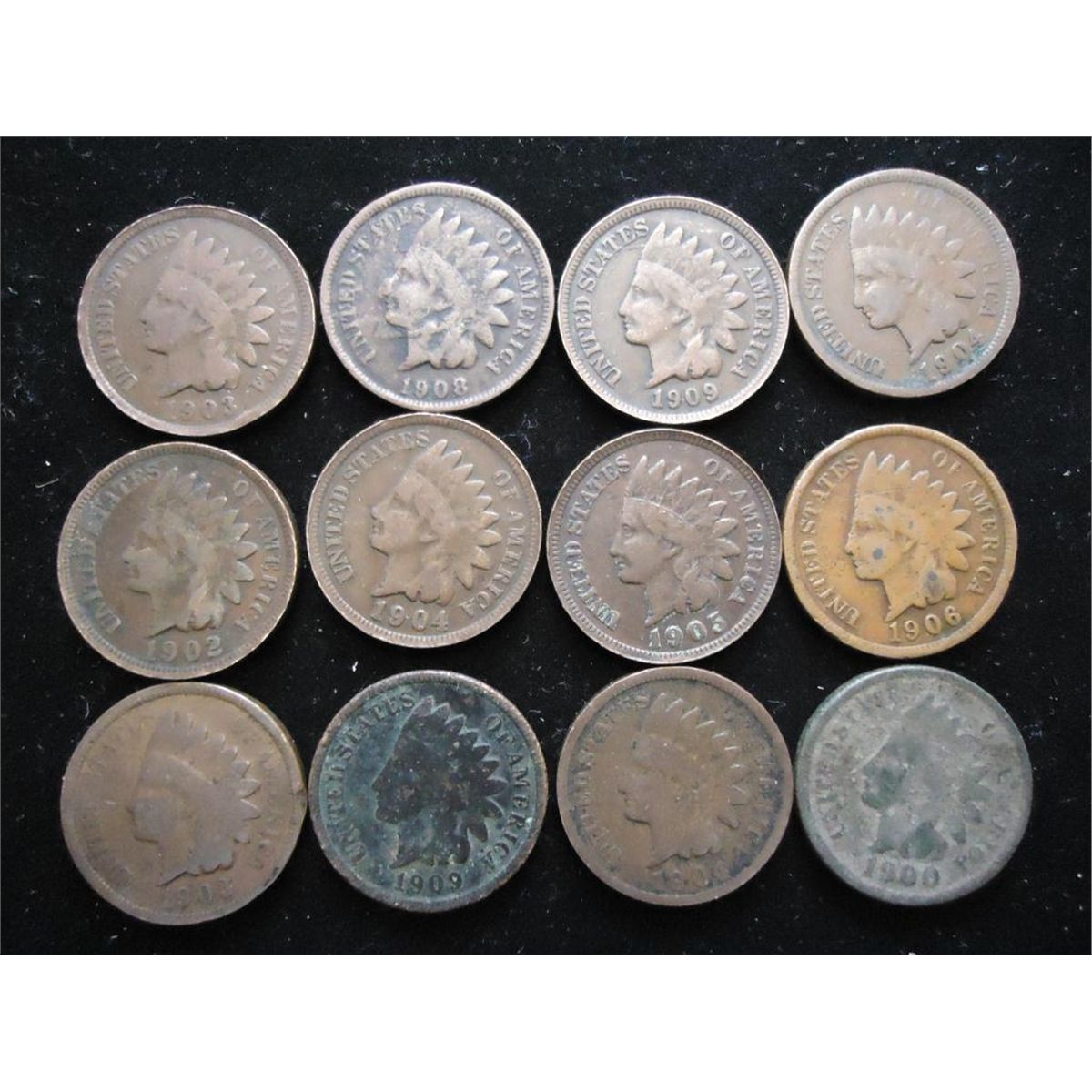 12 ASSORTED 1900'S INDIAN HEAD CENTS