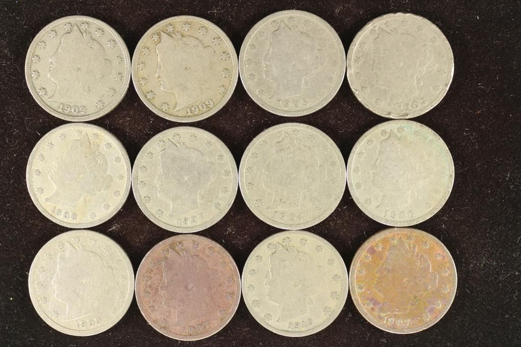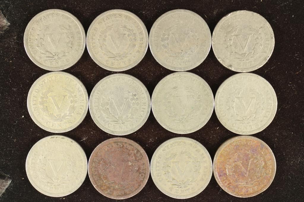 12 ASSORTED 1900'S LIBERTY "V" NICKELS