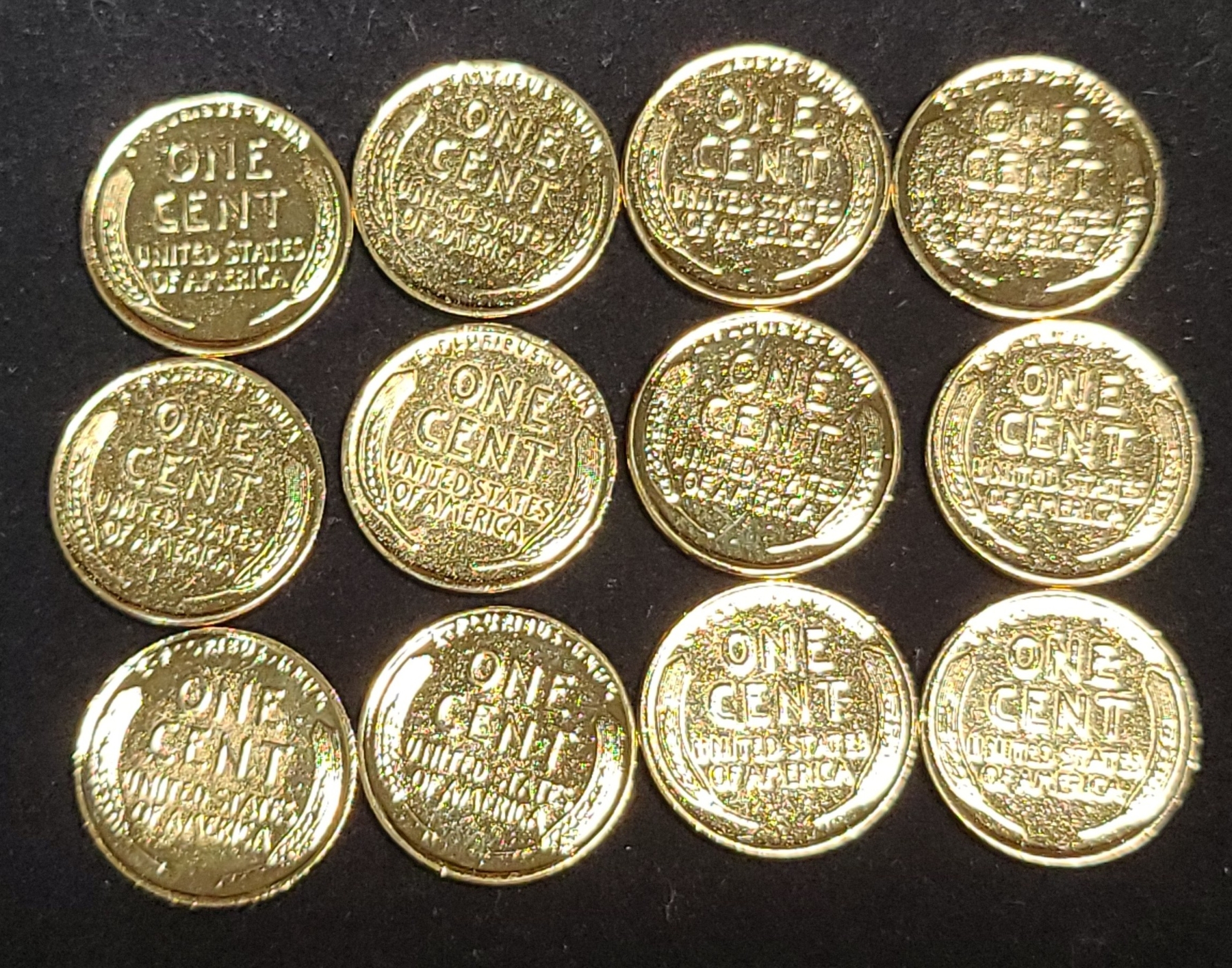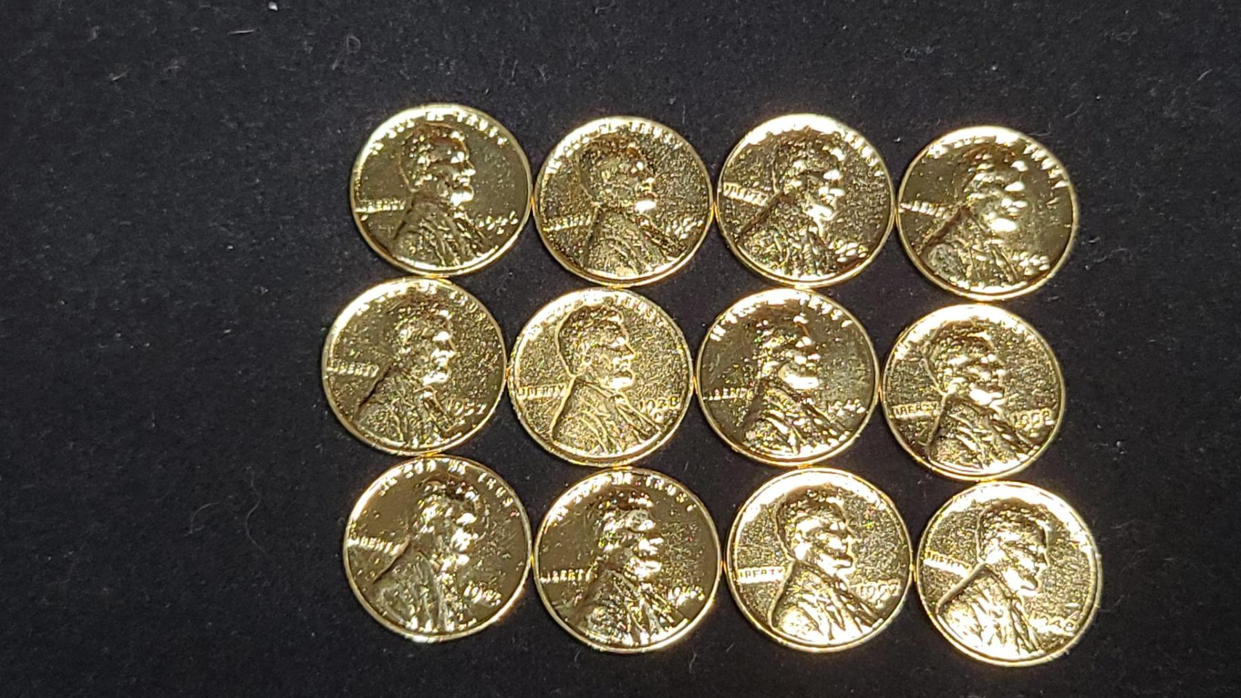 (12) Assorted Years/Mint Marks Gold Plated Lincoln Wheat Cents