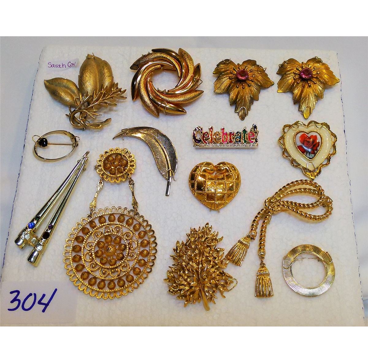 12 BROOCHES - SARAH COV AND A PAIR OF SHOE CLIPS