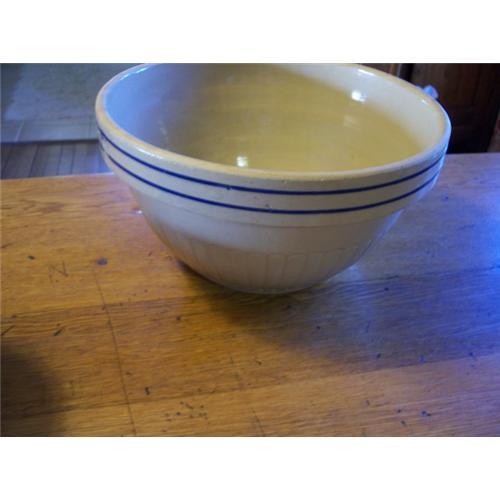 </font></strong>This is a large blue band bowl,made by RedWing in the 1930s.Very nice condition.This is a large bowl measuring 12" across.No chips or cracks,but there is a spider web on the bottom outside that does NOT go through.Very sound bowl.</font>