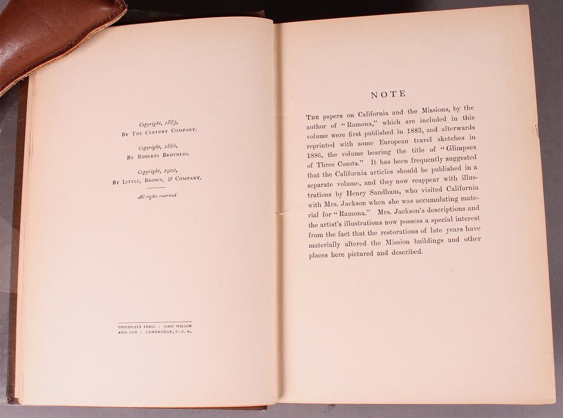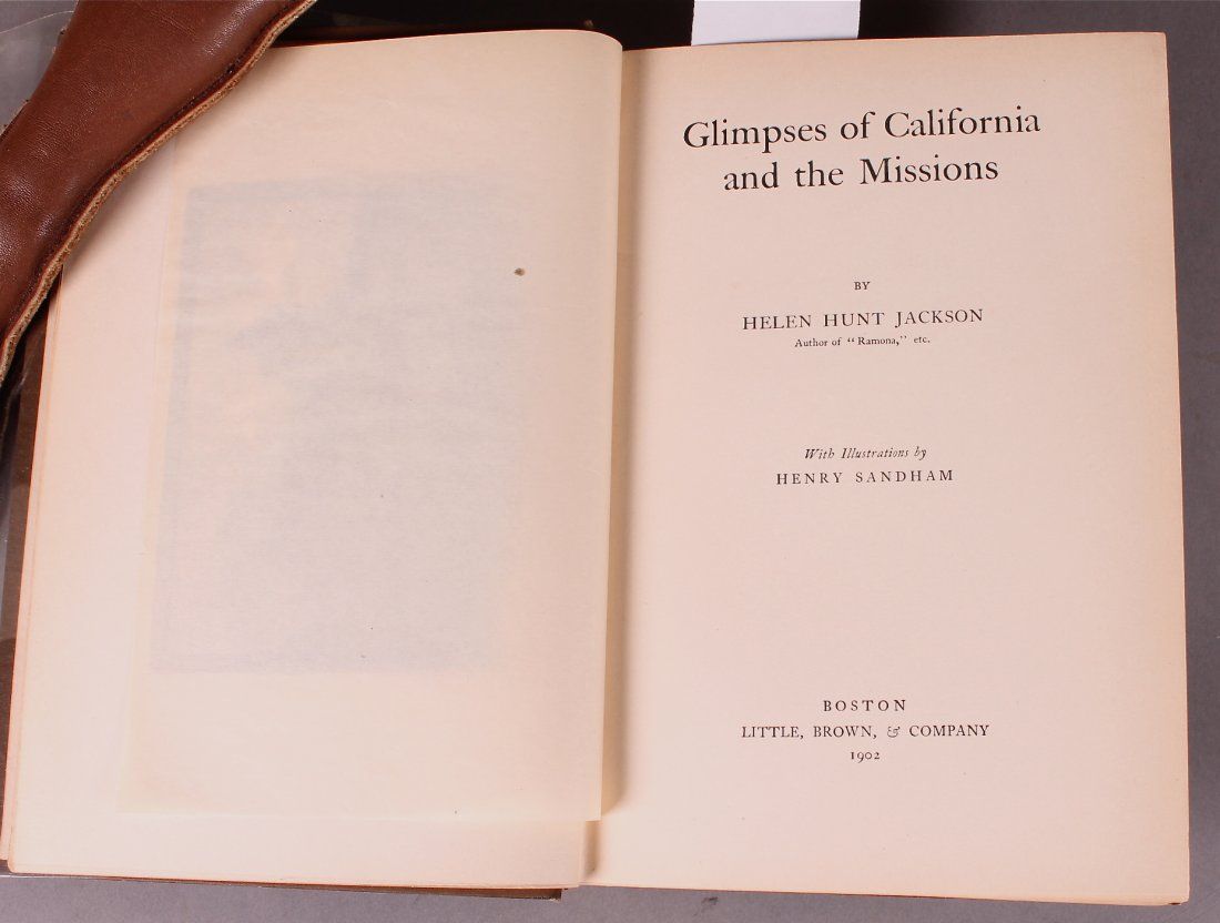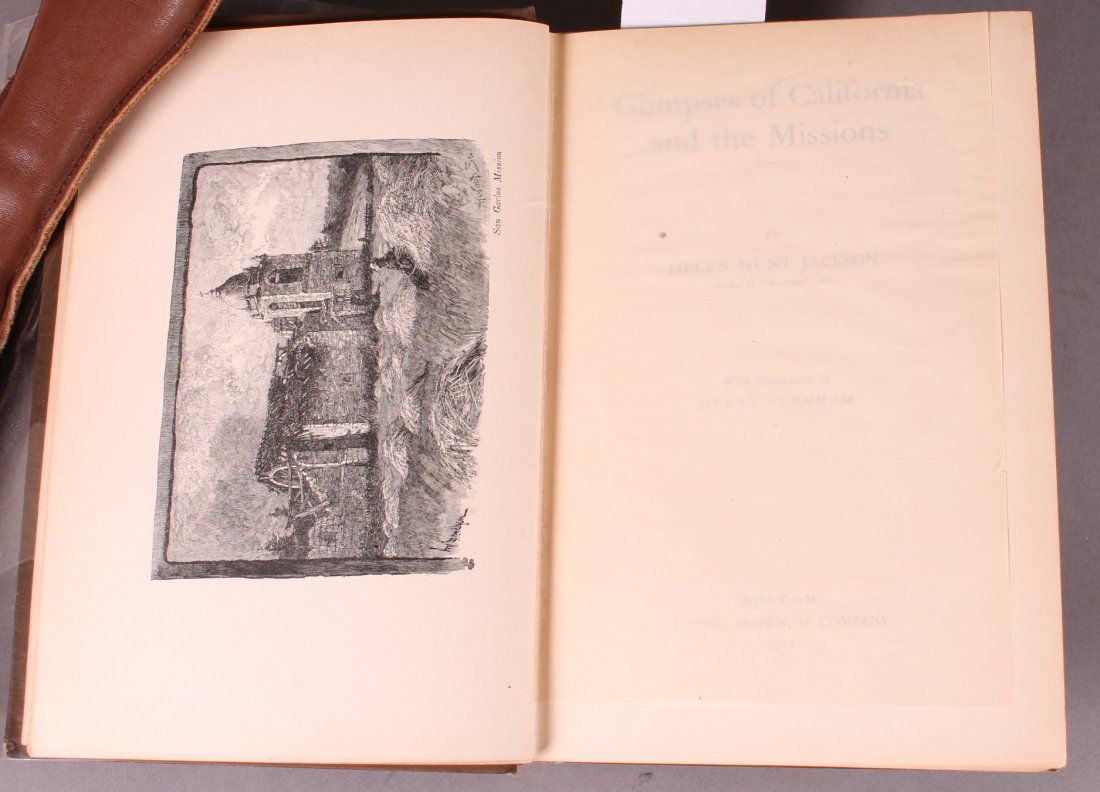 [Views/West]. 12 Titles. First 11 listed are published Bos: Page Co., and illustrated with plates showing landscape (mostly b/w, some in color). 8vo. ++ Agnes Rush Burr. ALASKA: Our Beautiful Northland of Opportunity. Page, 1919. ++ Archie Bell. SUNSET CANADA: British Columbia and Beyond. 1918. ++ Nevin O. Winter. TEXAS THE MARVELLOUS: The State of the Six Flags. 1916. ++ Thomas D. Murphy. OREGON THE PICTURESQUE. 1917. ++ Muprhy. ON SUNSET HIGHWAYS: A Book of Motor Rambles in California. 1921. ++ George Wharton James. CALIFORNIA ROMANTIC AND BEAUTIFUL. (1919). ++ Murphy. THREE WONDERLANDS OF THE AMERICAN WEST. 1912. ++ George Wharton James. ARIZONA THE WONDERLAND. (1920). ++ Mae Lacy Baggs. COLORADO THE QUEEN JEWEL OF THE ROCKIES. Page, (1926). ++ Helen Hunt Jackson. GLIMPSES OF CALIFORNIA AND THE MISSIONS. Illustrations by Henry Sandham. Bos: Little, Brown, & Company, 1902. ++ George Wharton James. UTAH: The Land of Blossoming Valleys. 1922.