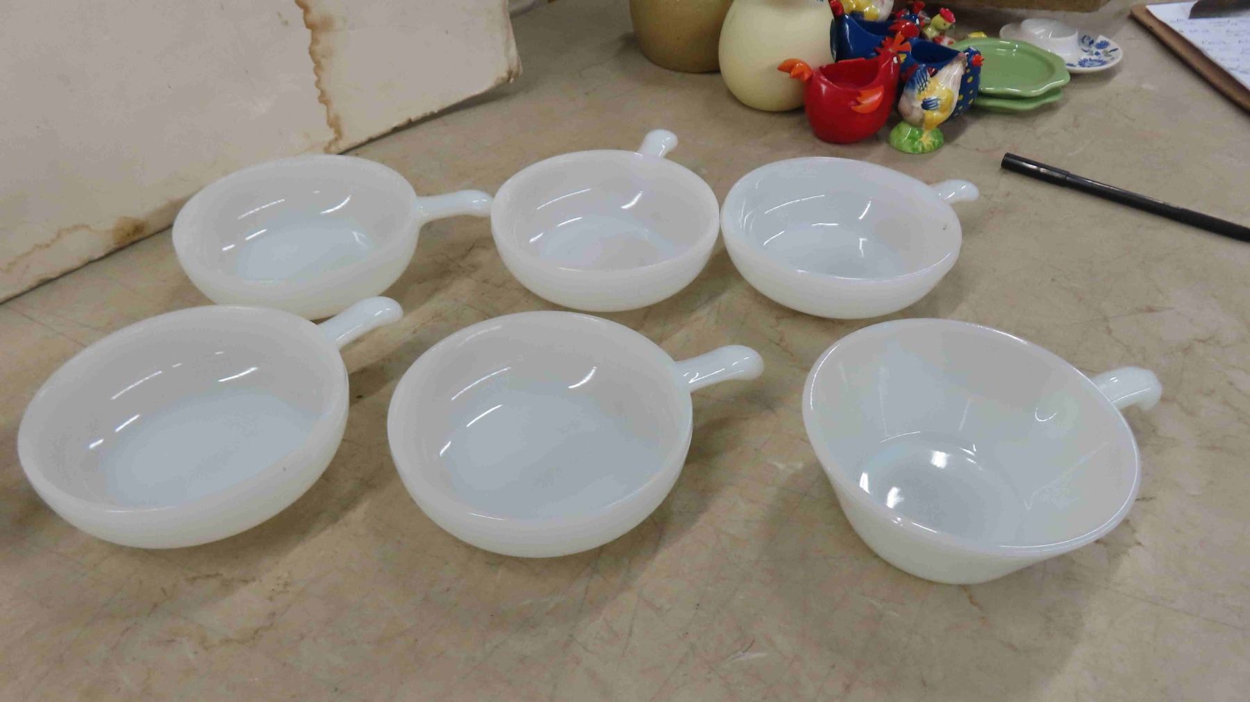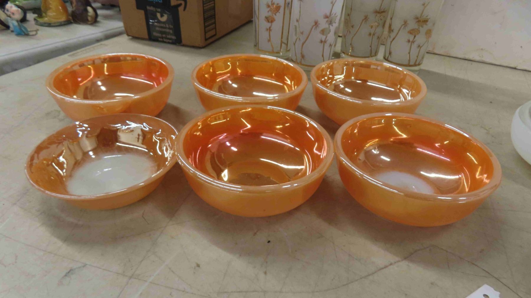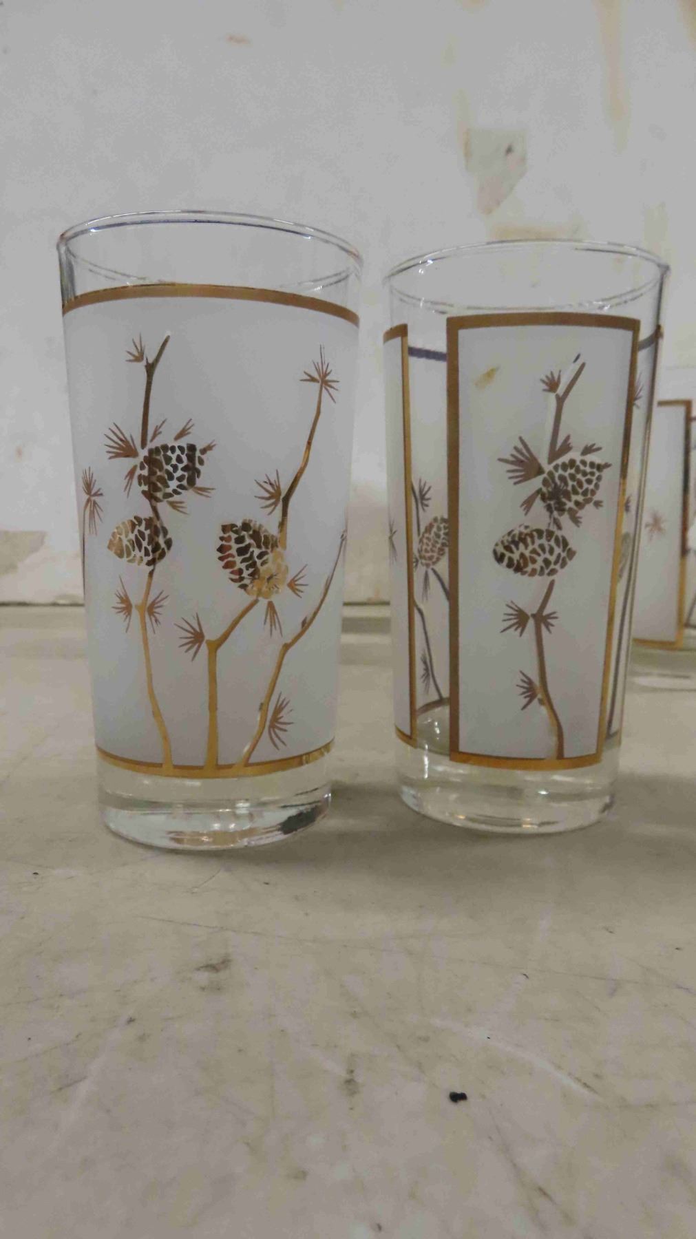 12 Bowls - 6 with Handles, 2 with Lids + 8 Glasses with Gold Toned Accents