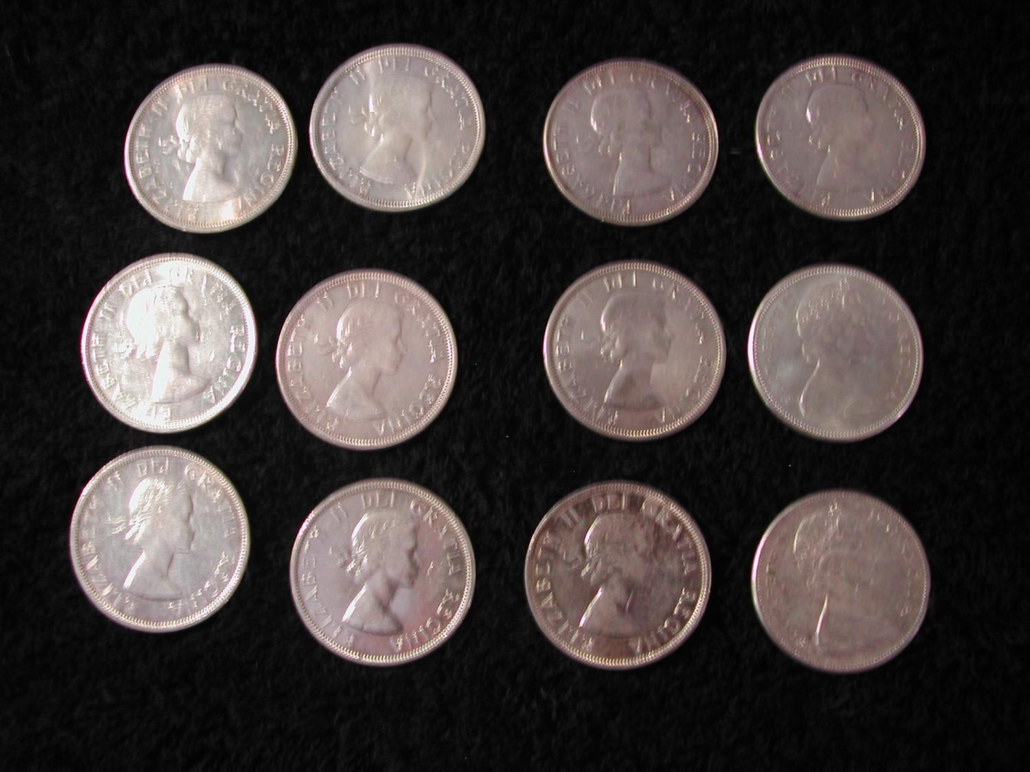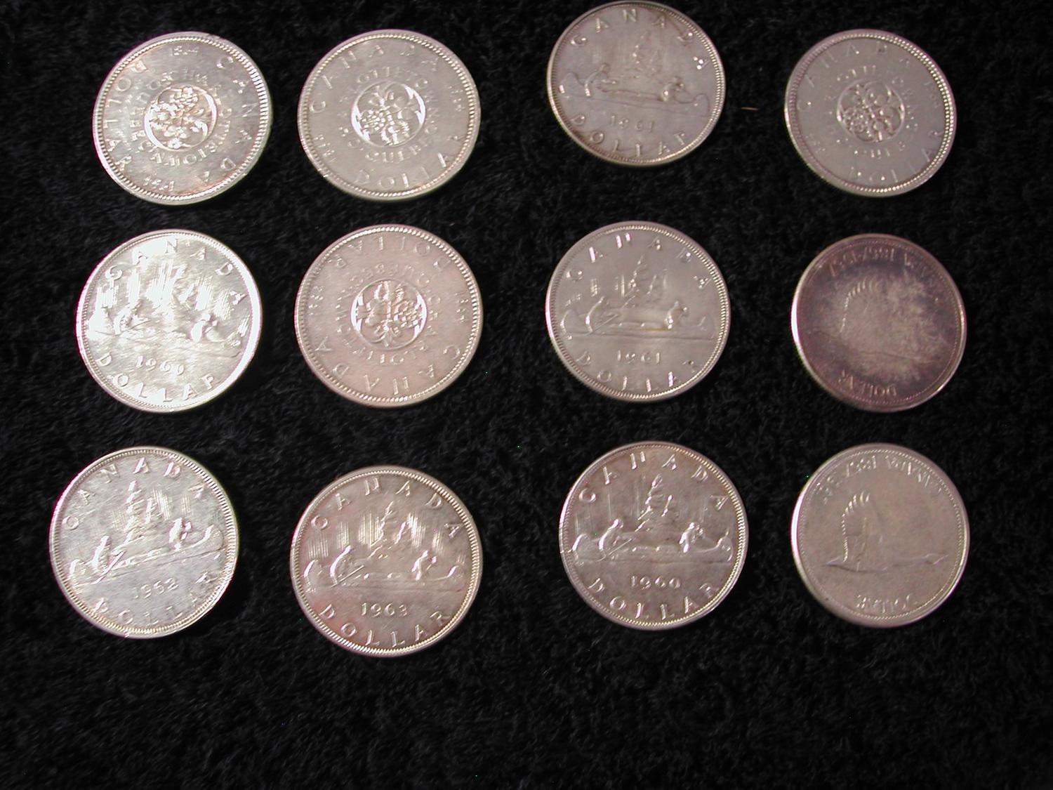 12 CANADIAN SILVER DOLLARS 1960-1967 (ONE MONEY)