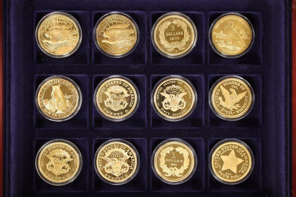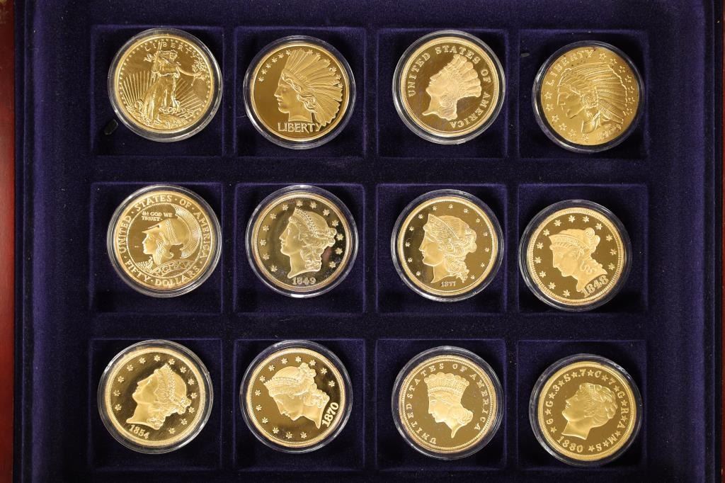 WITH AN INFO CARD HOUSED IN A NICE WOODEN DISPLAY BOX, EACH IS IN HARD PLASTIC CAPSULE, NICE SET.