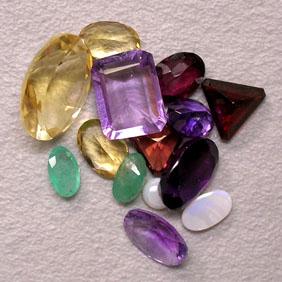 LOT OF SEMIPRECIOUS STONES, DIFFERENT SHAPES AND SIZES. IT WEIGHTS 12 CTS. INCLUDES AMETHYST, TOPAZ, CITRINE, EMERALD, OPAL AND ONYX.