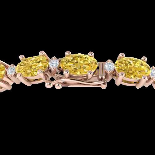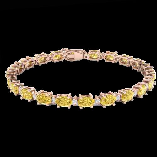 REF-72Y5K -21445 ---- 12 CTW Citrine & VS/SI Diamond Eternity Bracelet 10K Rose Gold ---- Luxury Designer Brand Bracelet Appraised at $4,800 Certificate Number US21445 10k Rose gold, Bracelet Size is 7 Inches, Bracelet measuring approx. 4 mm X 7 inches, weighing in total approx. 7.6 grams. Made in the USA and is stamped 10k, Main stone 11.5 carat total weight containing 22 pieces of Translucent Yellow color with AAA quality Oval shape cut Citrine , Stone #2 0.5 carat total weight containing 22 pieces of H-I color with VS/SI quality Round shape cut Diamond