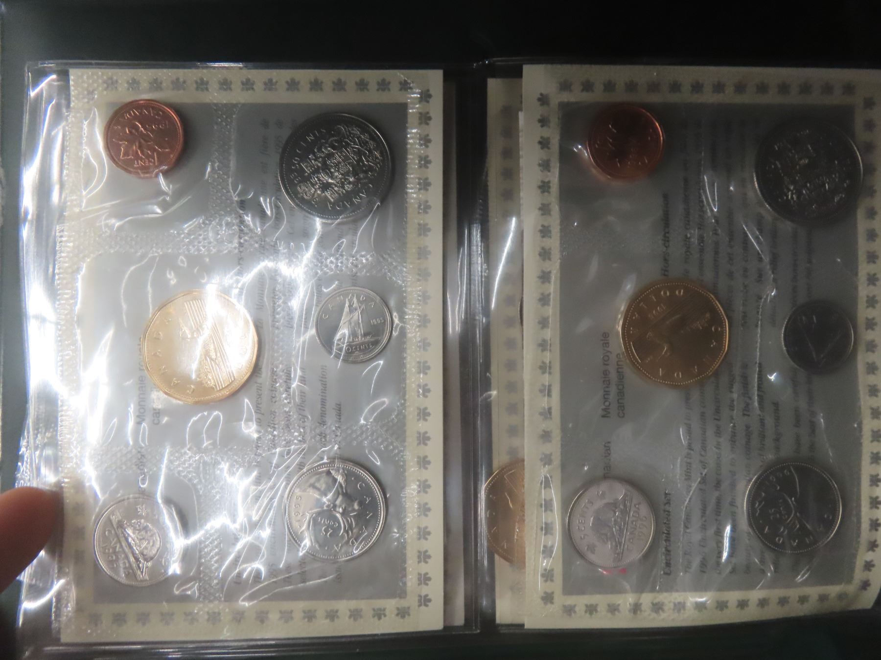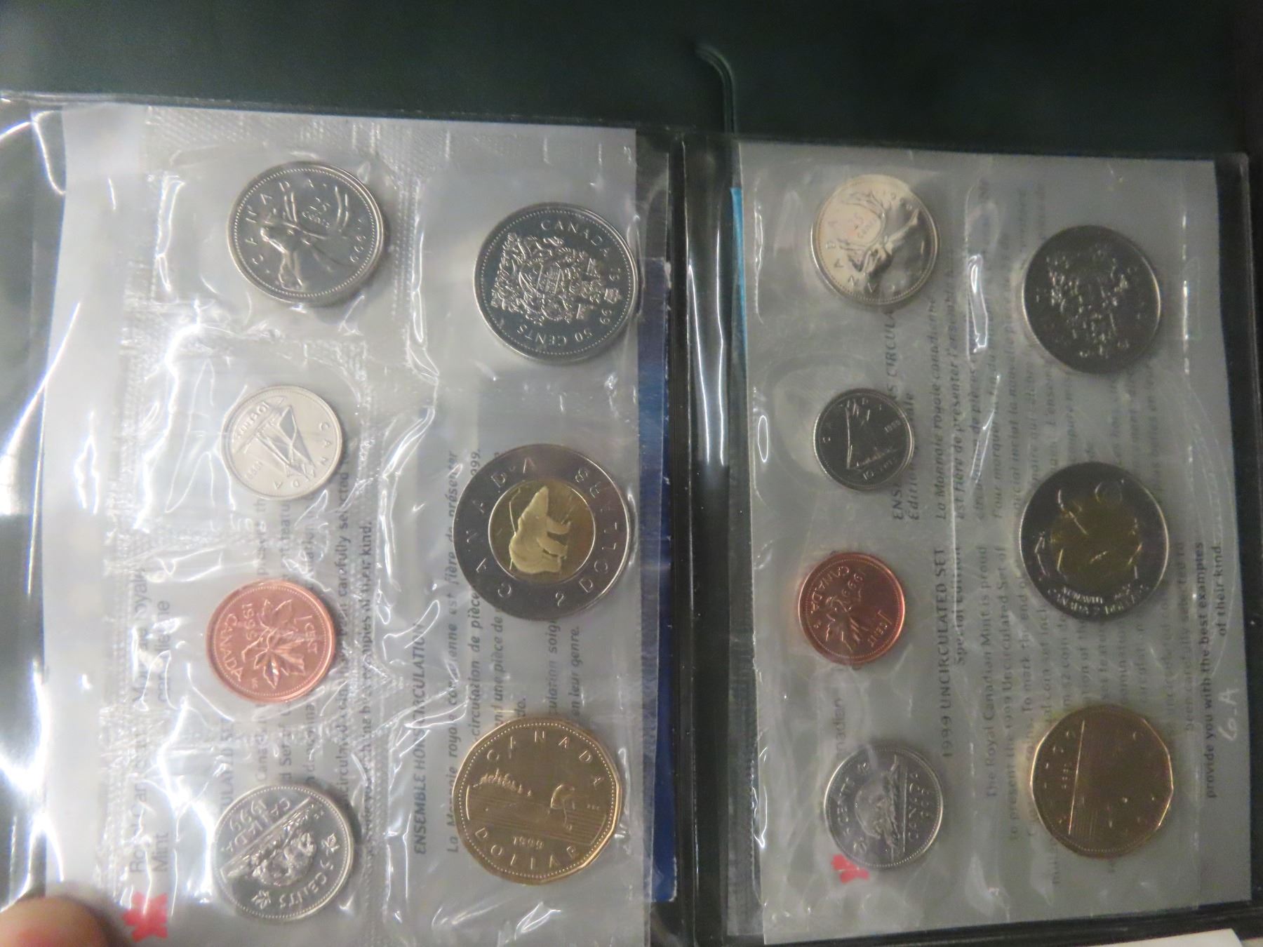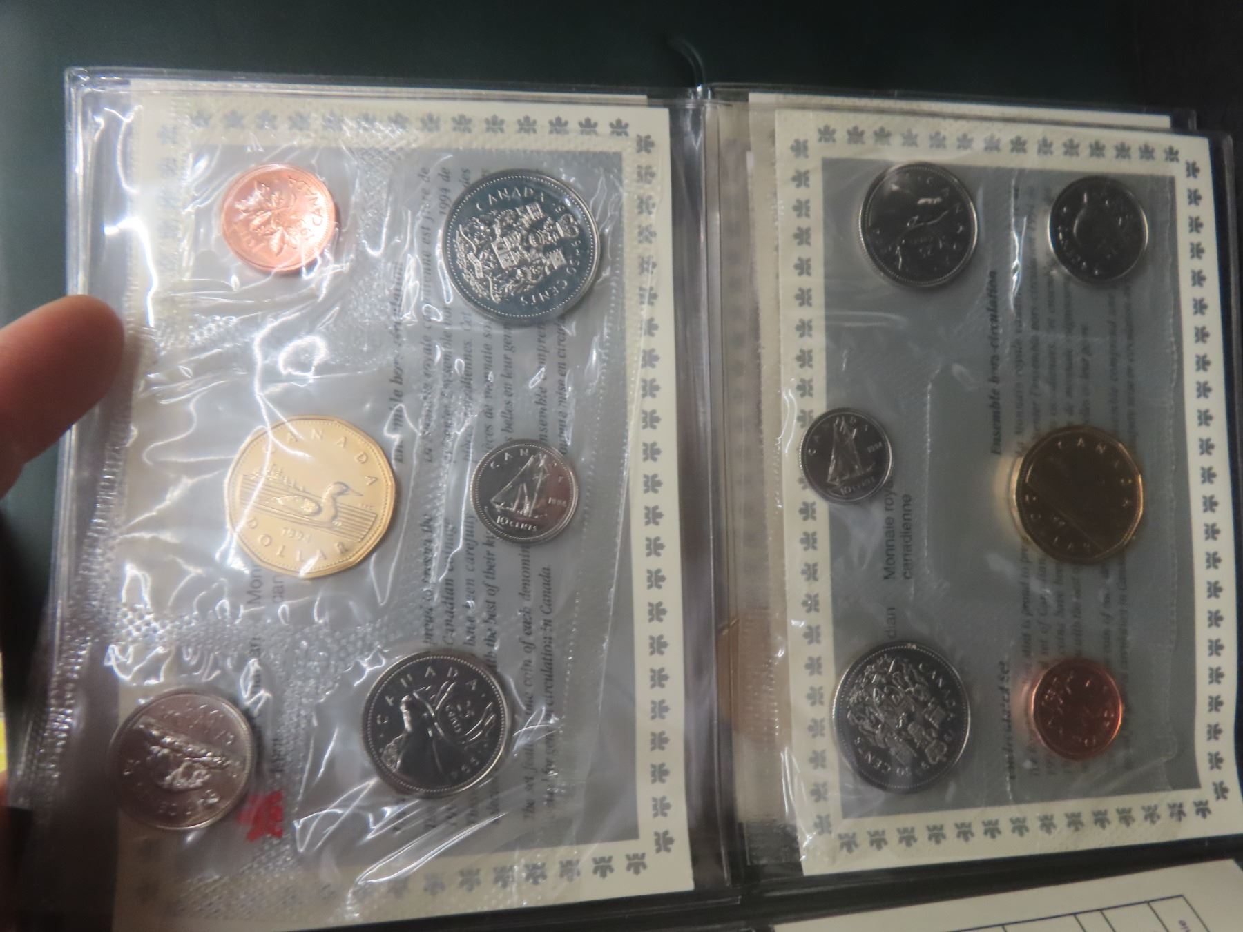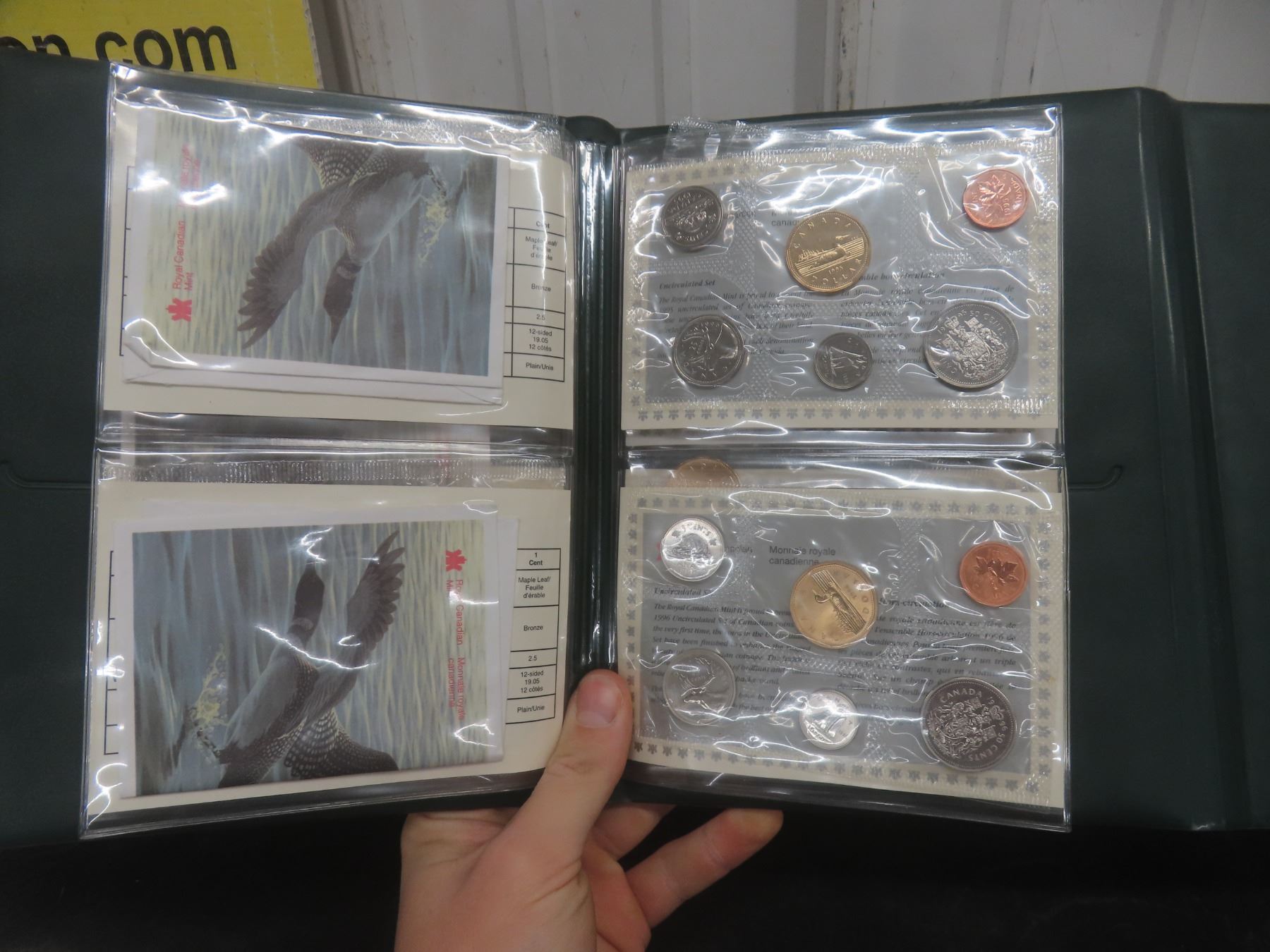 12 Canadian Uncirculated Coin Sets in Book, 1990–1999