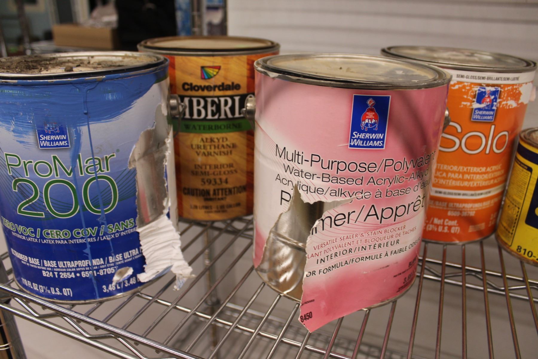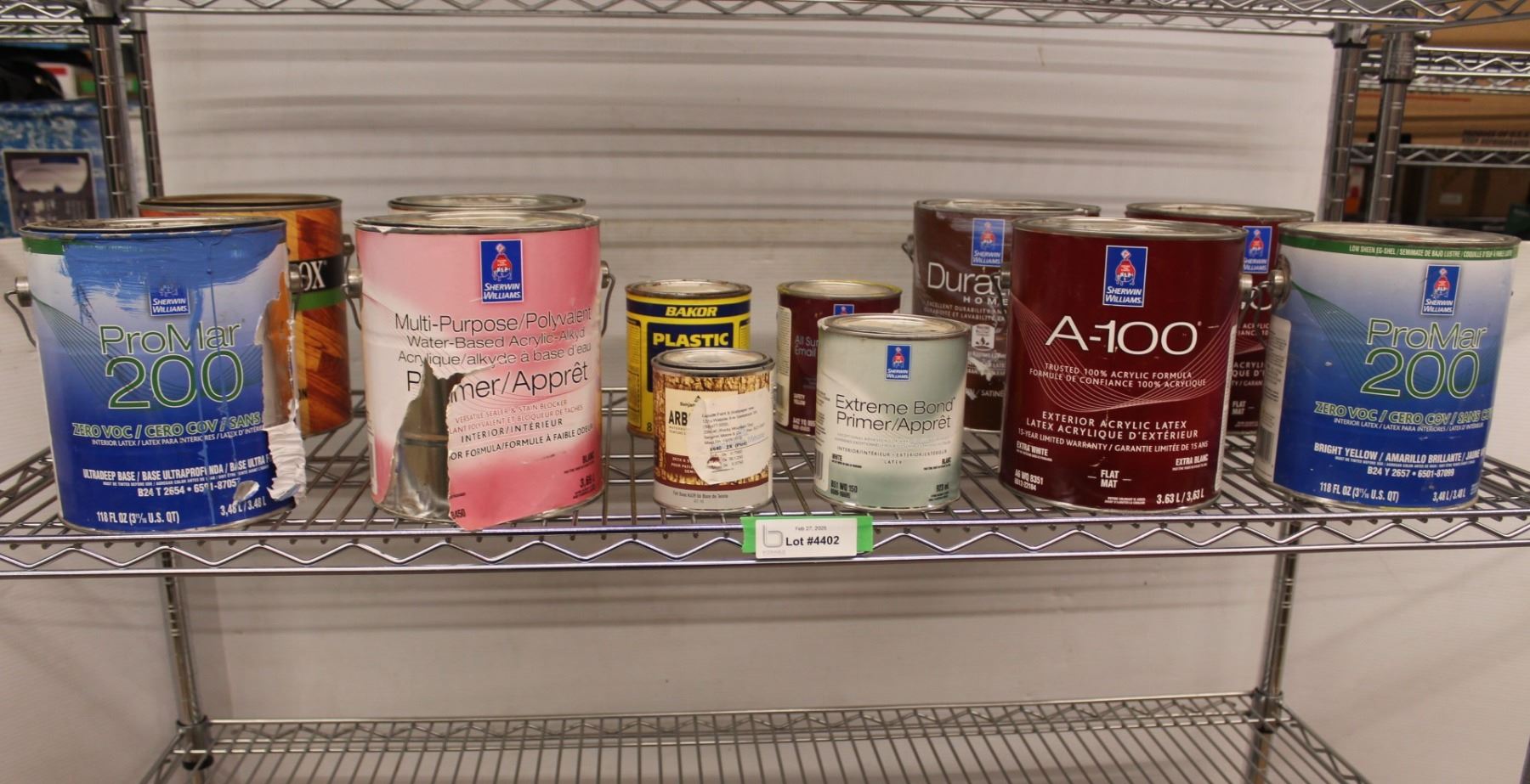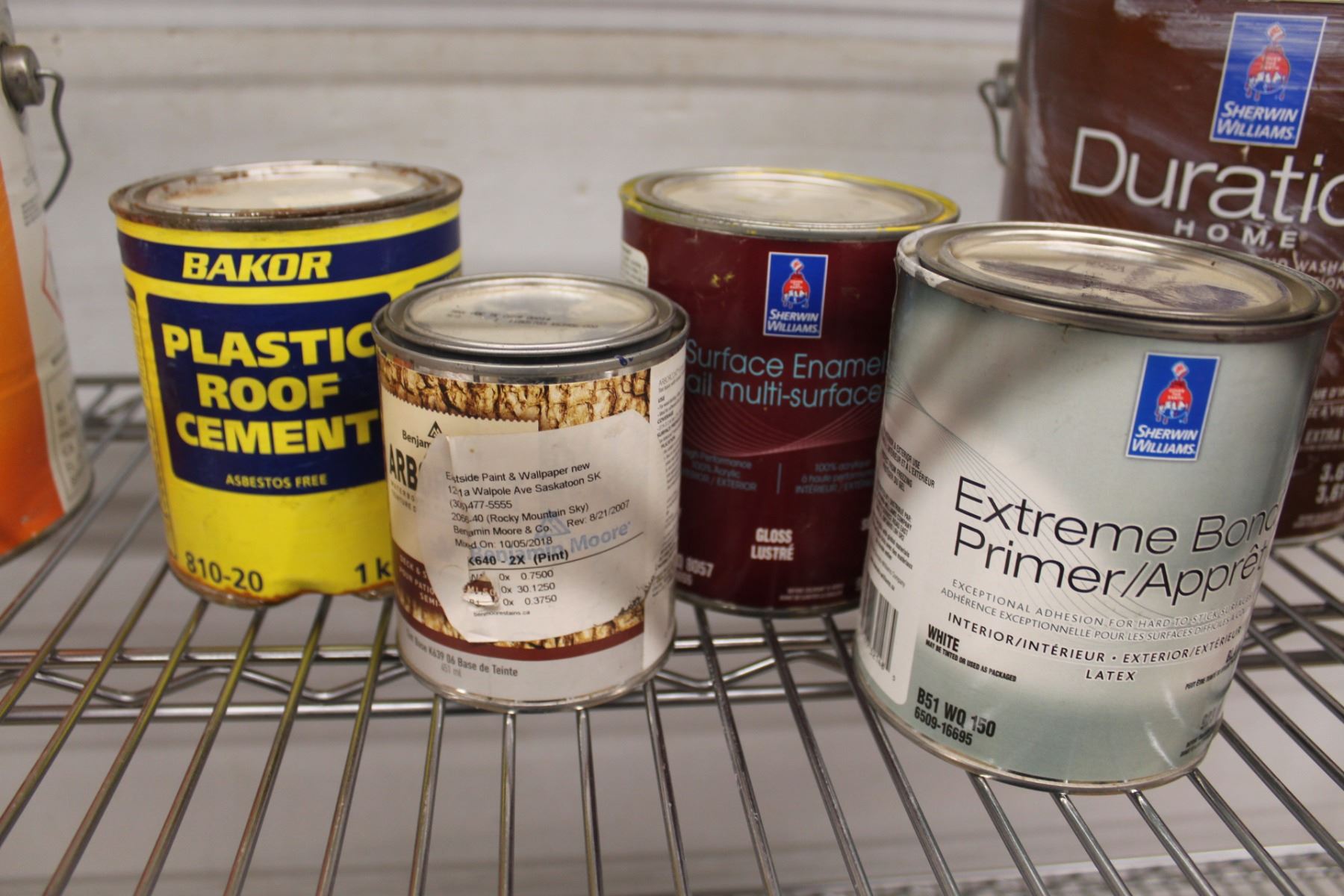 ** (12) Cans of Paint Products (Satin, Flat, Primer, Varnish - Most Partial) CANNOT BE SHIPPED!!!