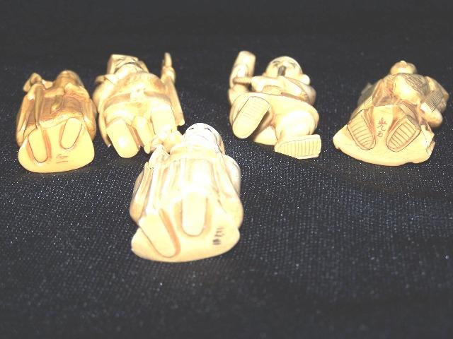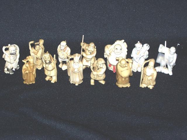Lot of 12 carved bone of Asian figures. Some have small marking or signed on lower feet. Approx 2" in size. Condition s good.