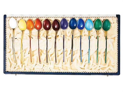 Gilt silver, 116 g, different colour translucid enamel decoration. In original box. Marked: 925 fineness, Scandinavian, 20th century.