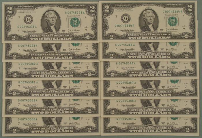 Mint mark: G (Chicago) Grade: Crisp Uncirculated* The bills you receive will look different from those pictured. One has a bank stamp