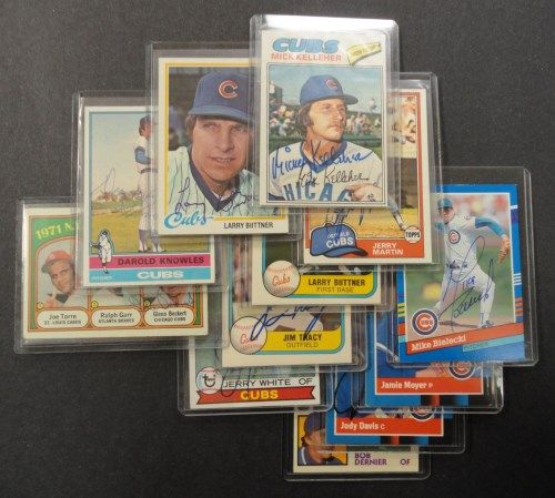 Glenn Beckert, Darold Knowles, Mick Kelleher, 2-Larry Biittner, Jerry White, Jim Tracy, Jerry Martin, Bob Dernier, Jody Davis, Jamie Moyer, & Mike Bielecki. Mostly NM Est. Value $35.00 - $40.00