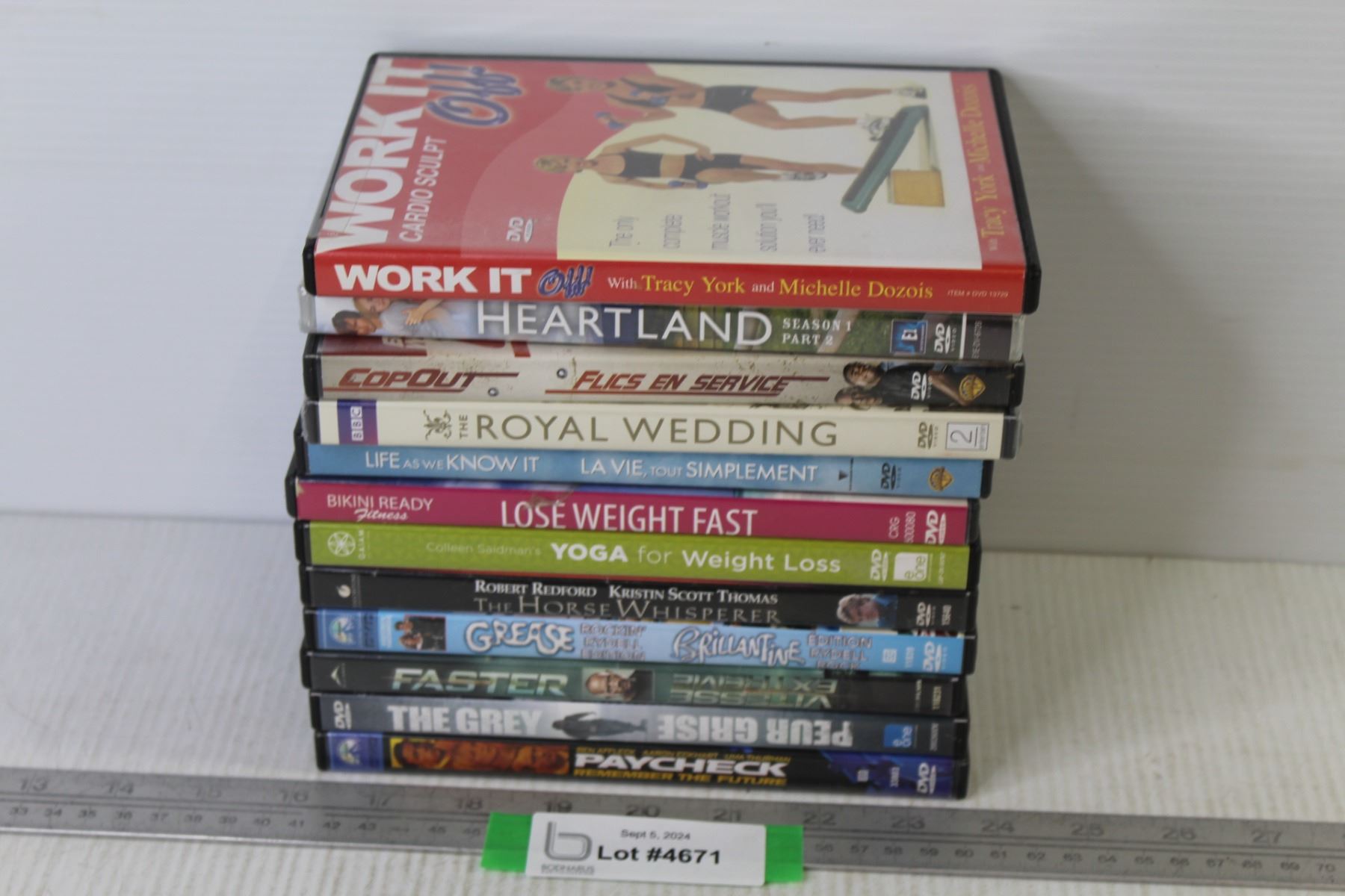 (12) DVDs - Exercise - The Grey - Grease - Faster - Pay Cheque - Horse Whisperer