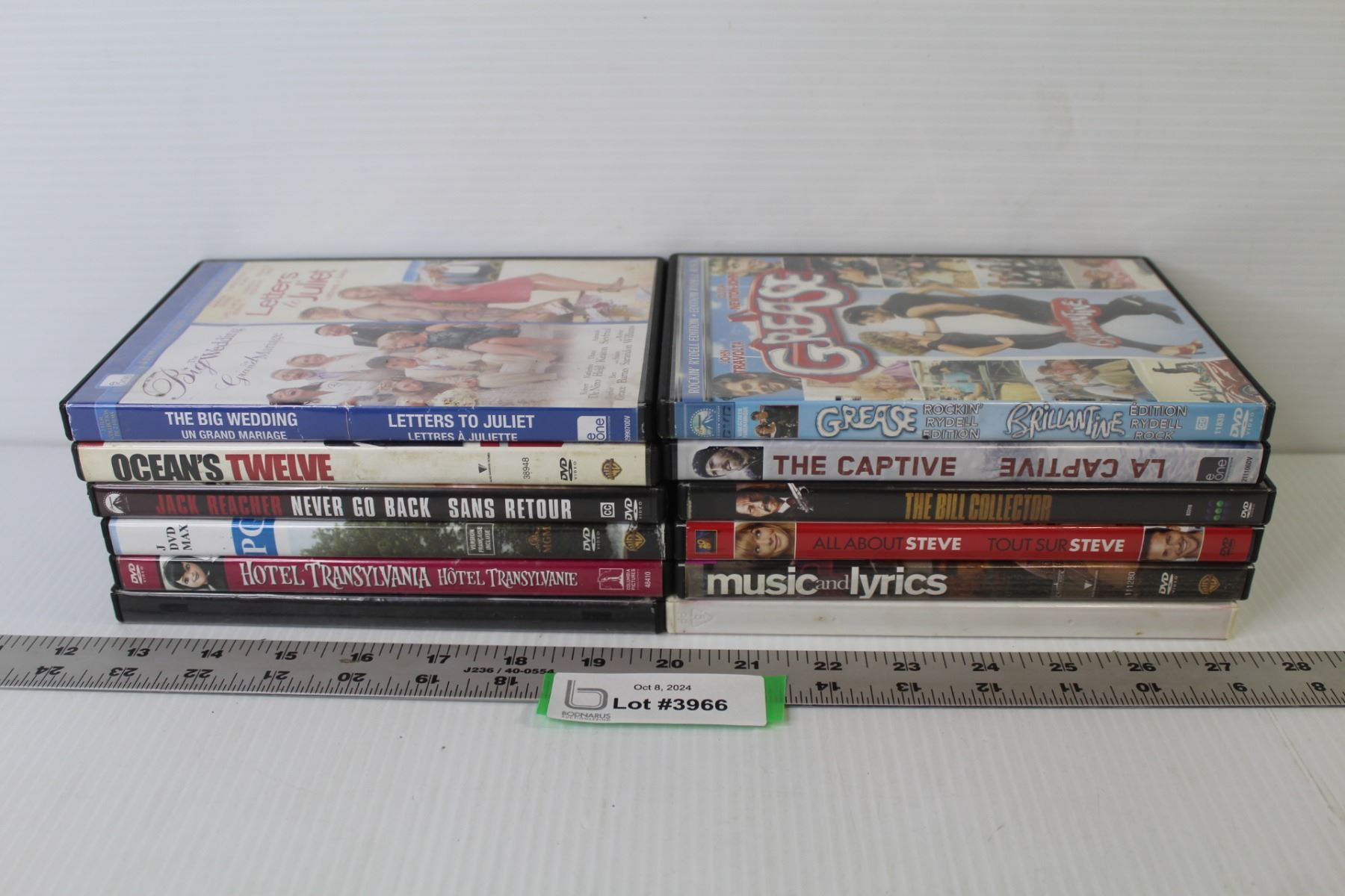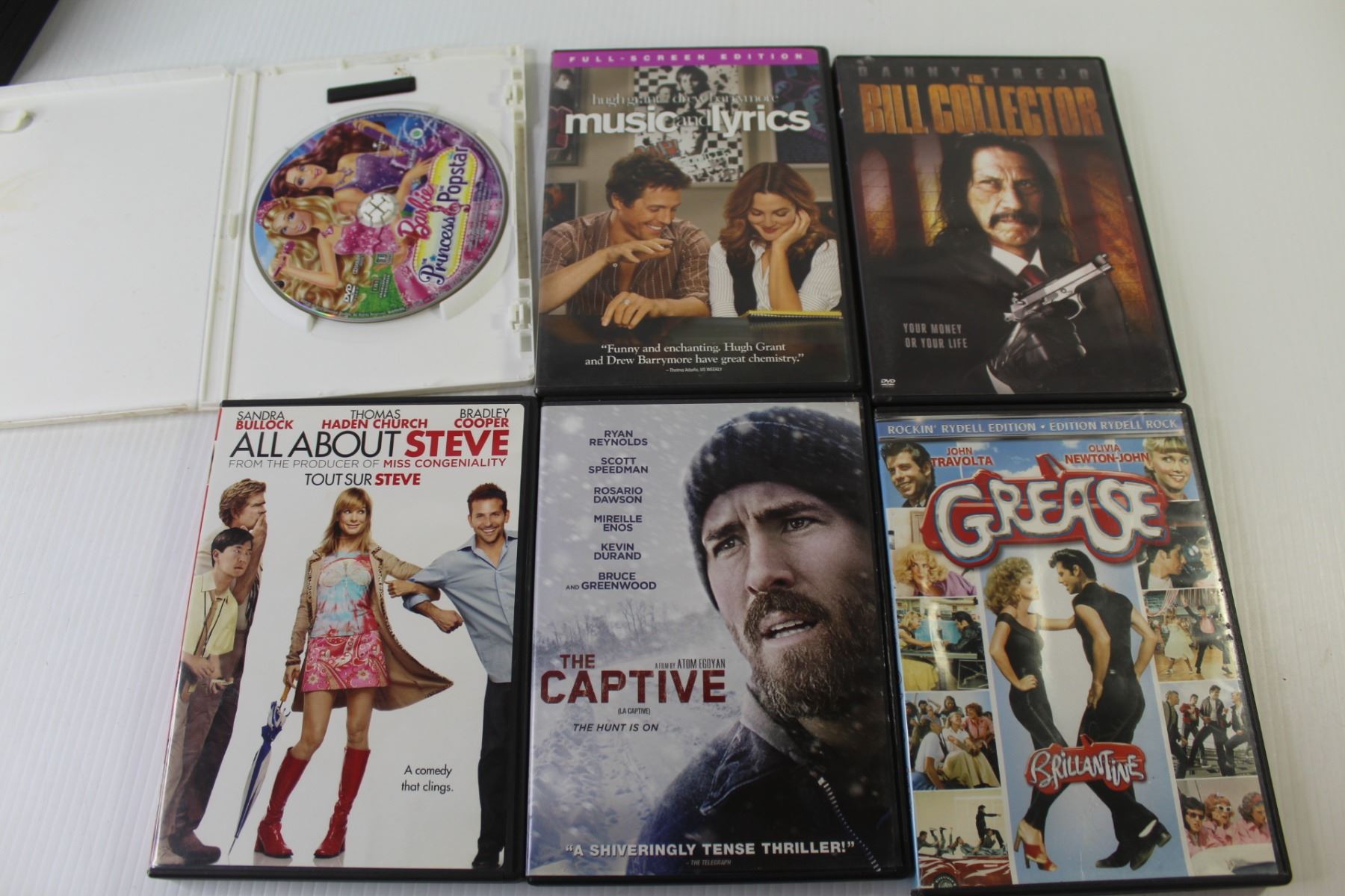 (12) DVDs - Grease - The Captive - Never Go Back - Music & Lyrics - The Bill Collector - Ocean's 12