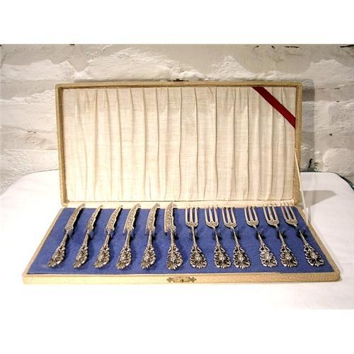 Beautiful Desert set of 12 pieces in silver 800. From beginning of 20th. Century. We don?t know where is from. Meassurement Knife: 6.3 inches. Fork: 5.5 inches