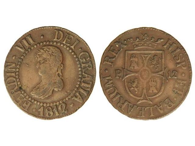 12 Diners. 1812. MALLORCA. Defecto de acuñación en anverso, normal en esta pieza. Cal-1594. MBC+.