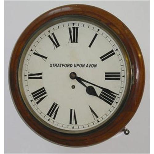 12" mahogany English dial clock signed Stratford Upon Avon circa 1900