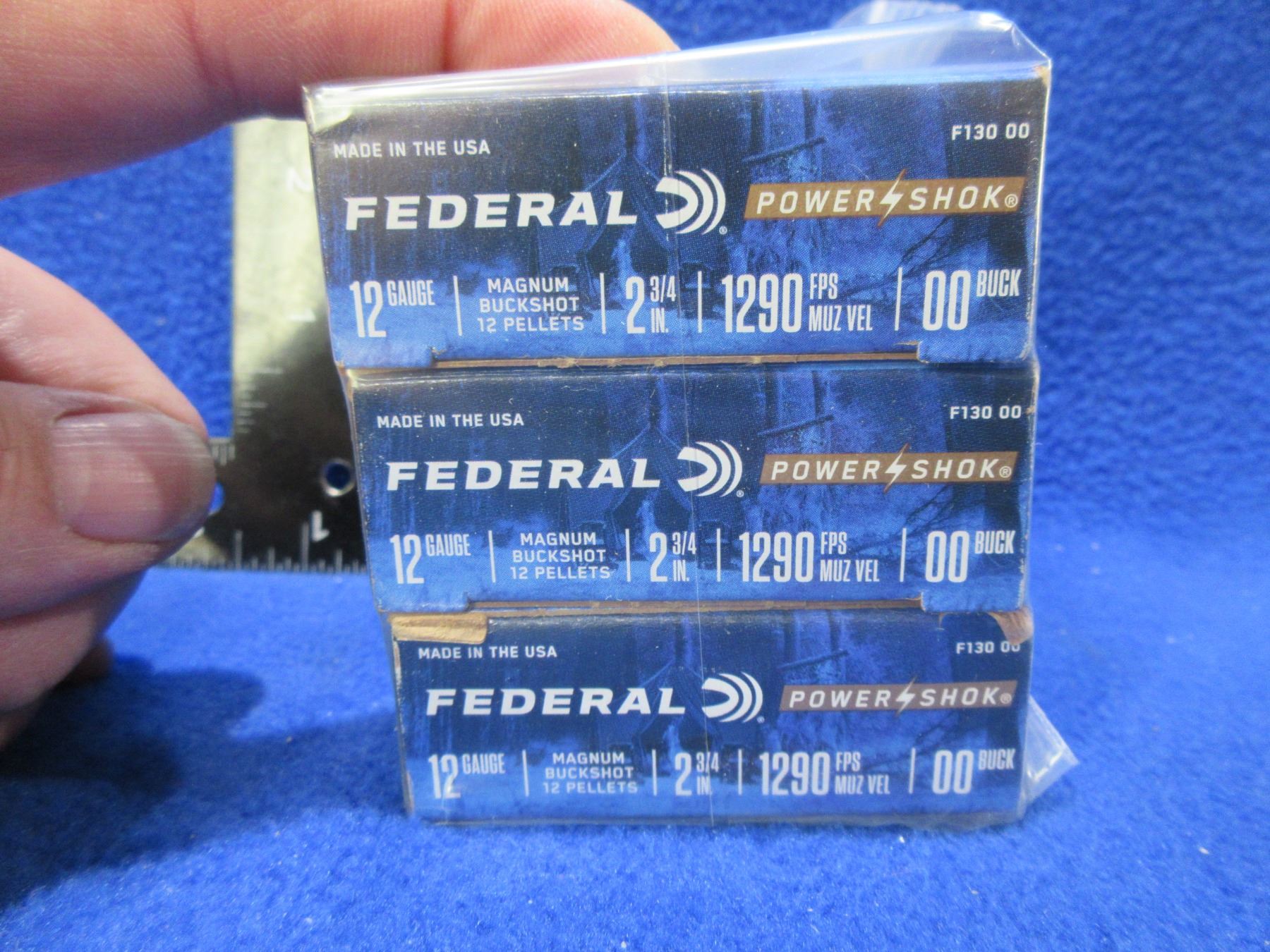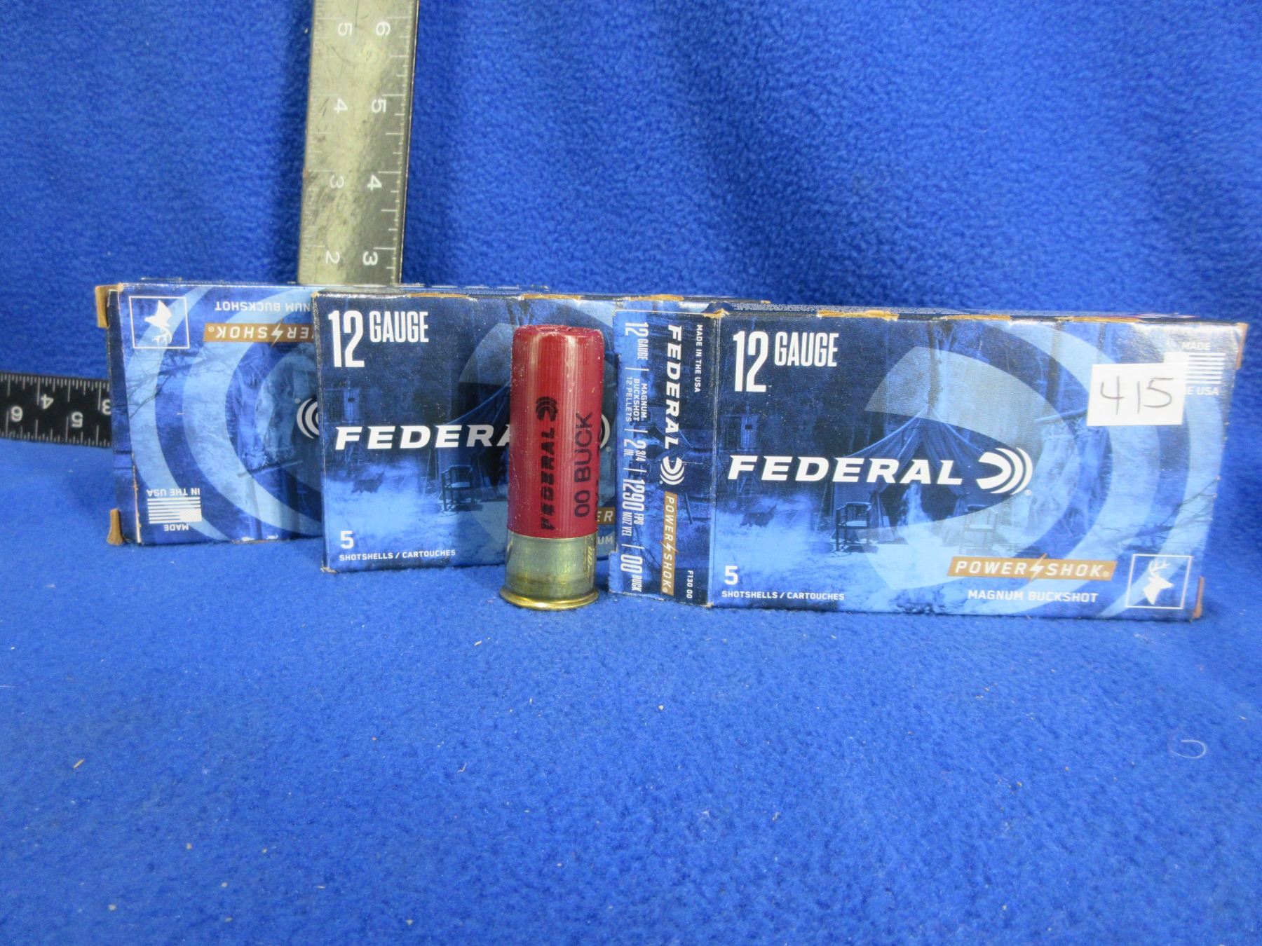 12 Ga. 2 3/4" 00 Buck Federal (Pick Up or Ship by UPS Only) Shotshells - 3 Boxes of 5