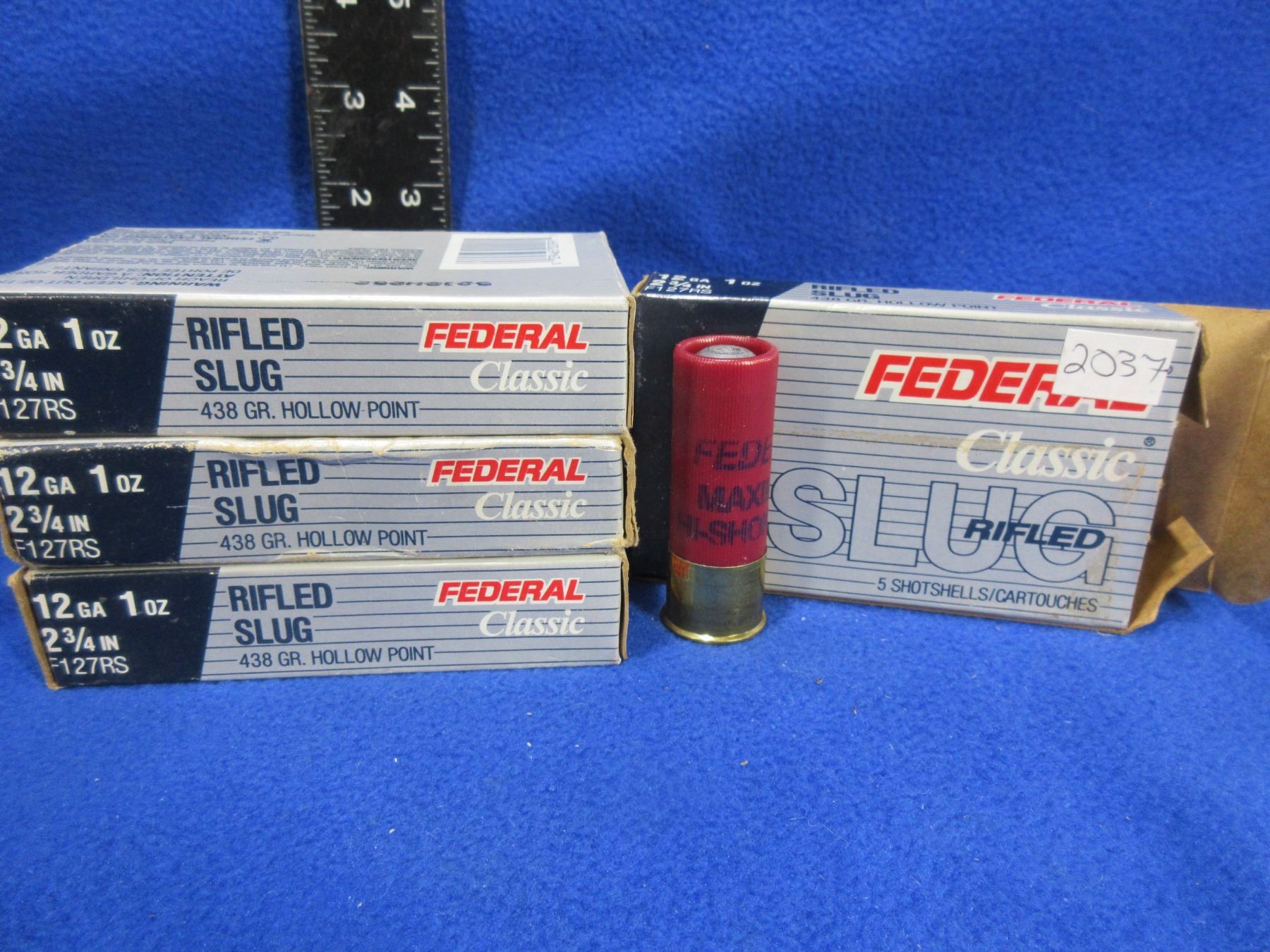 12 Ga 2 3/4" 438gr HP Rifled Slug Federal Shotshells - 4 Boxes of 5 - Must Ship Purolator