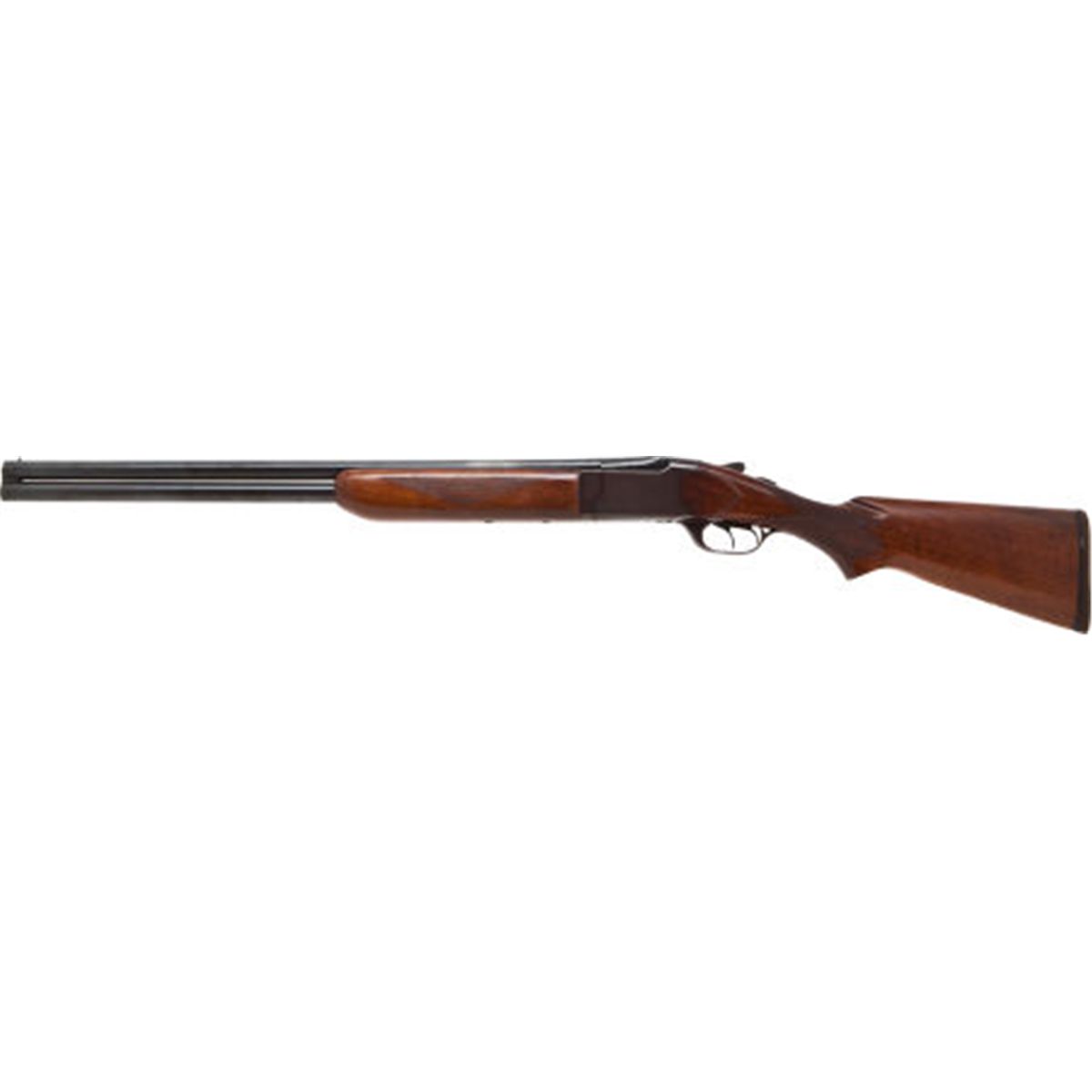 12 Gauge Marlin Model 90 Over and Under Shotgun. Serial no. F632. 12 gauge. 26-inch barrels. Blued boxlock action. Extractor. Double triggers. Checkered semi-pistolgrip stock and fore-end of semi-figured walnut. Later recoil pad. Condition: Very Good. Barrels show 90-95% finish with spotting. Bright bores. Action shows 95-98% bluing. Wood shows nicks and scratches. NRA FIREARMS FOR FREEDOM PROGRAM