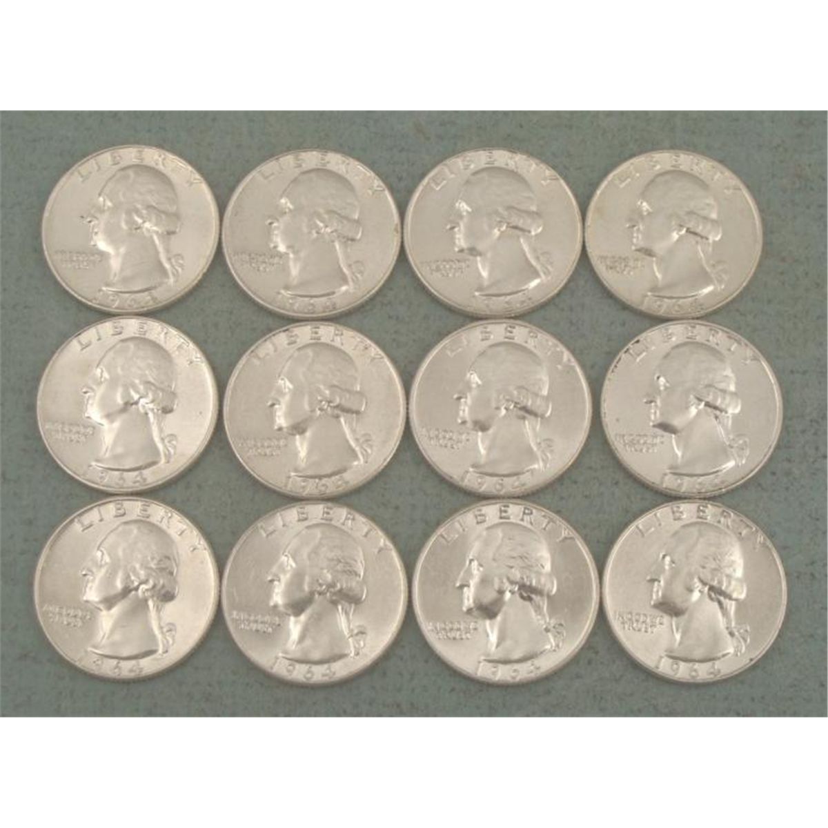 12 Gem UNC 1964-D Silver Quarters * Condition: Gem UNC