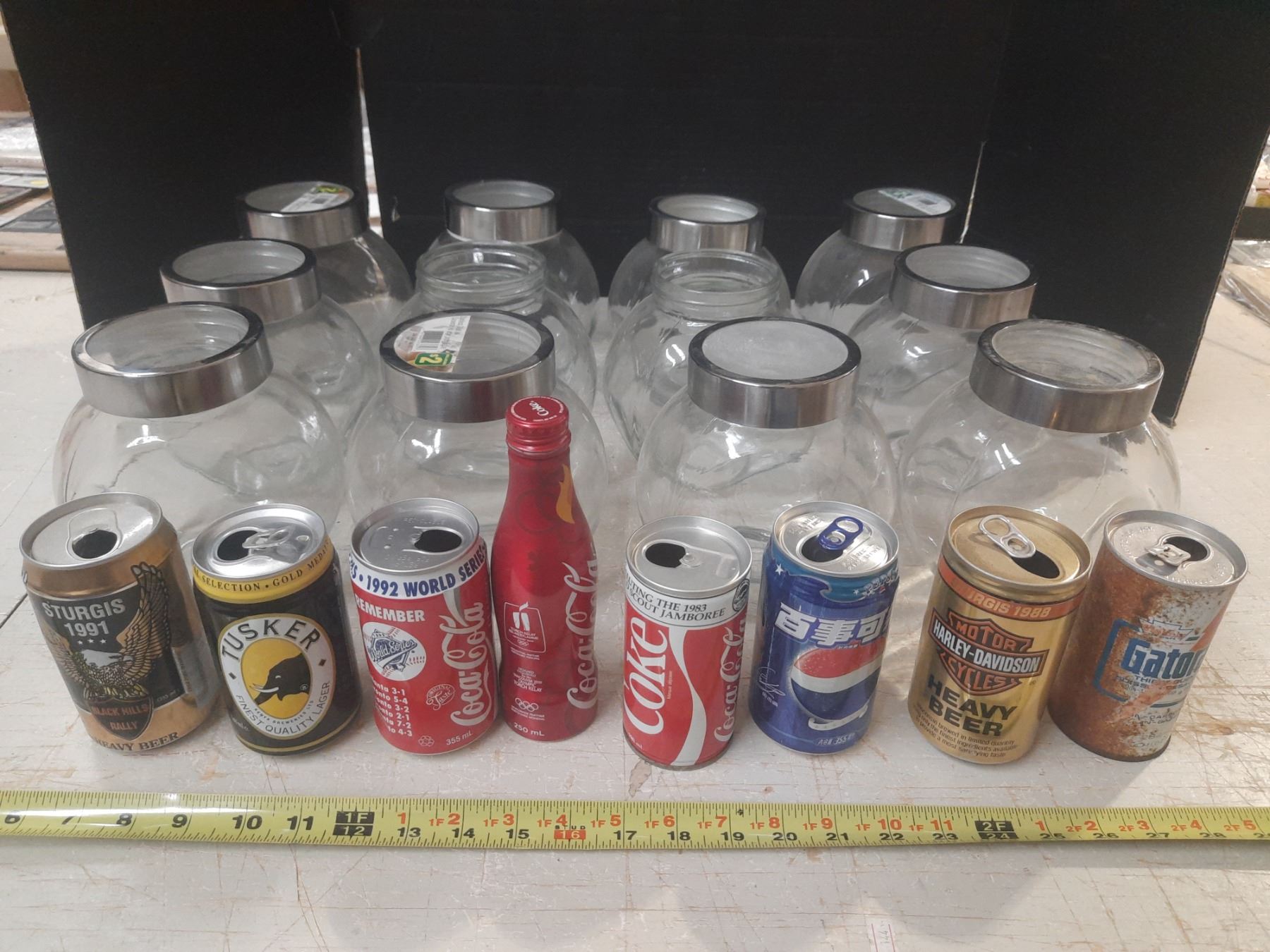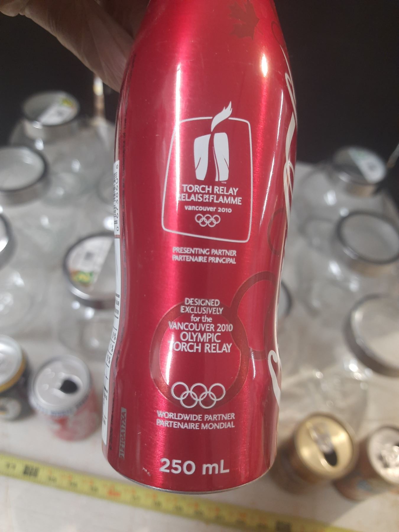 (12) Glass Containers and Vintage (8) Empty Cans - Empty Cocacola Bottle. (Exclusive made for Vancouver Olympics 2010)