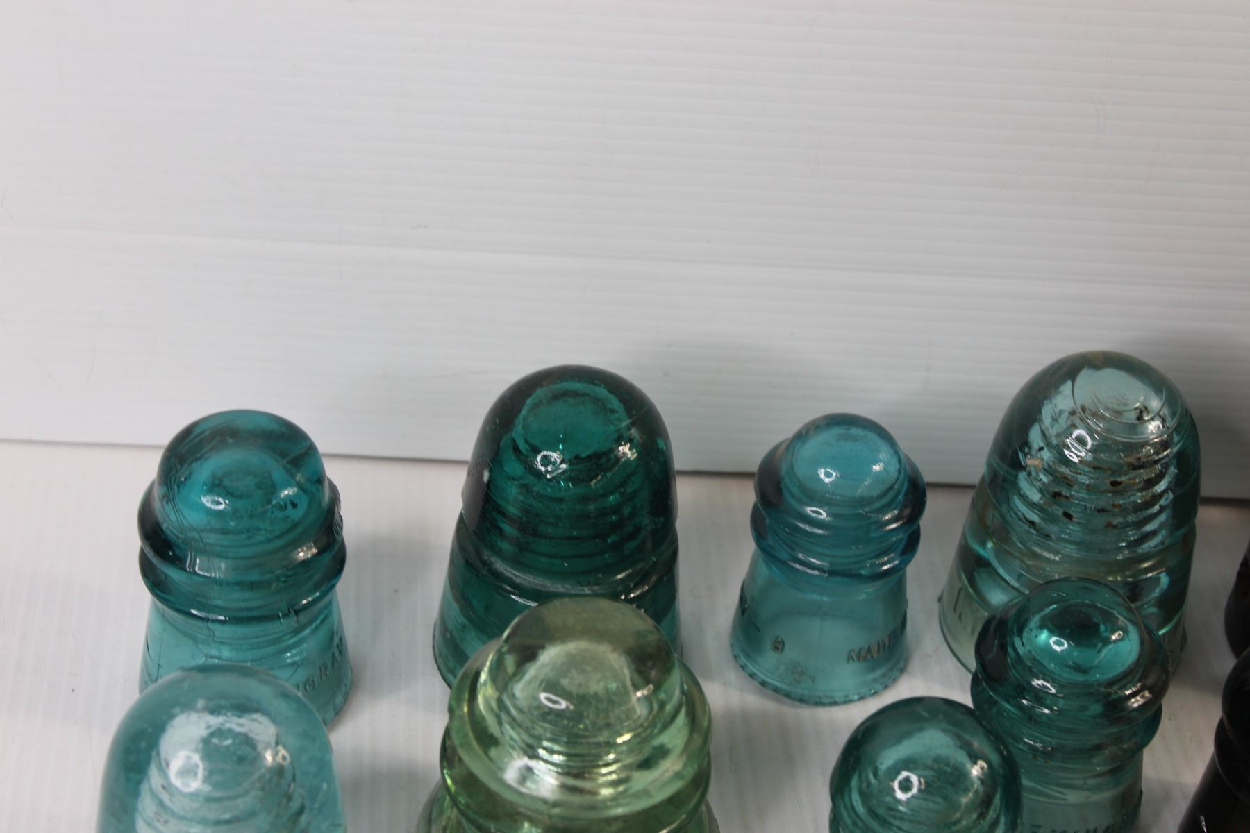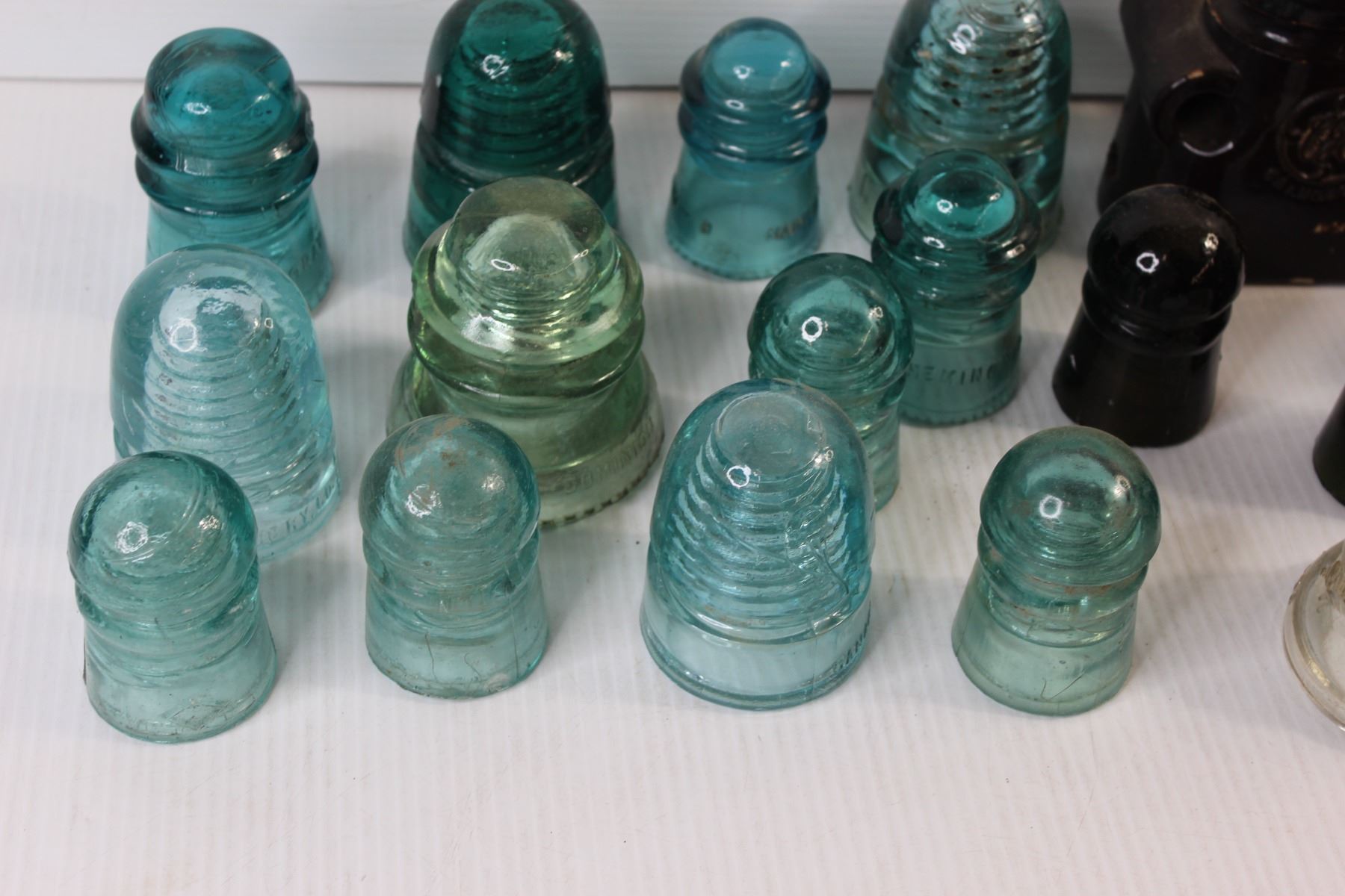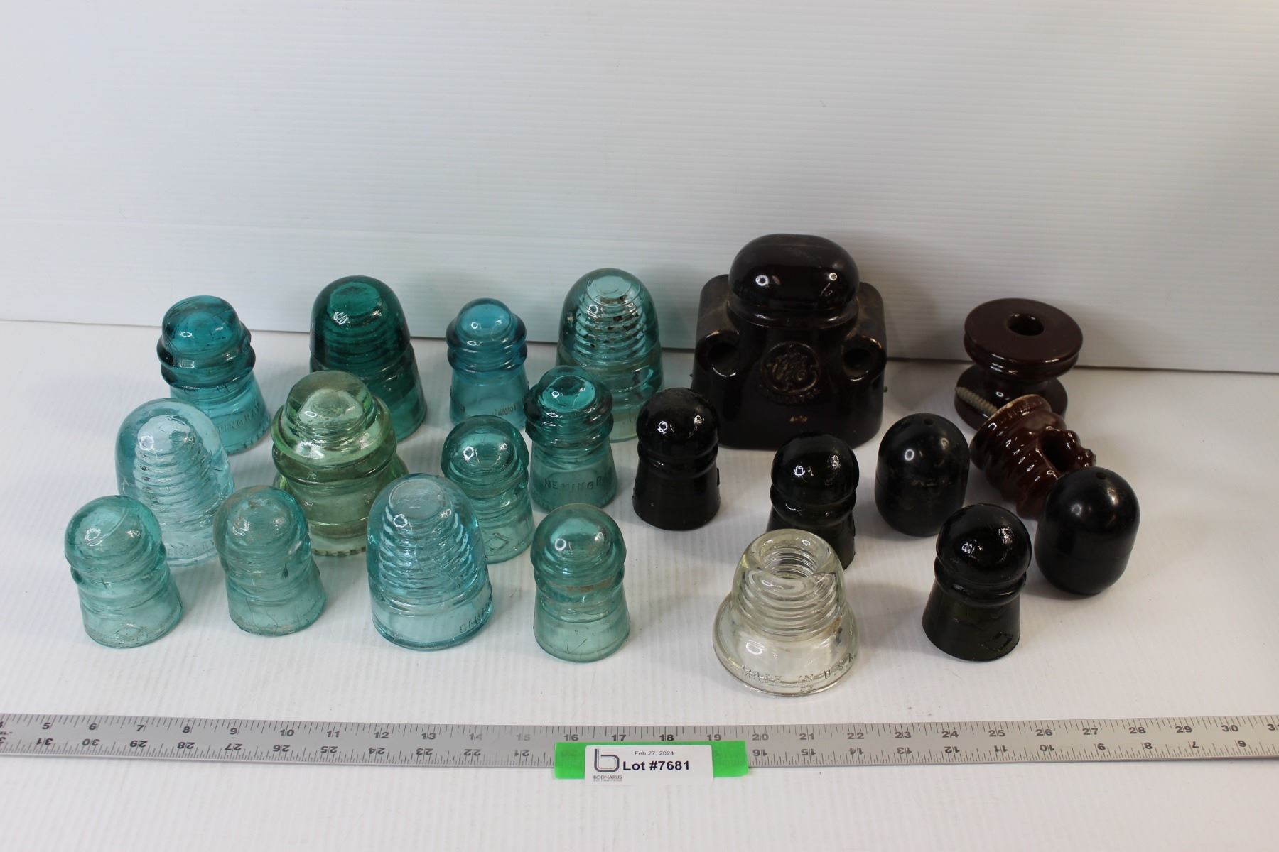 (12) Green Insulators, (3) Dark Green Insulators, (3\) Brown Power Pole Mounts, Clear Insulator