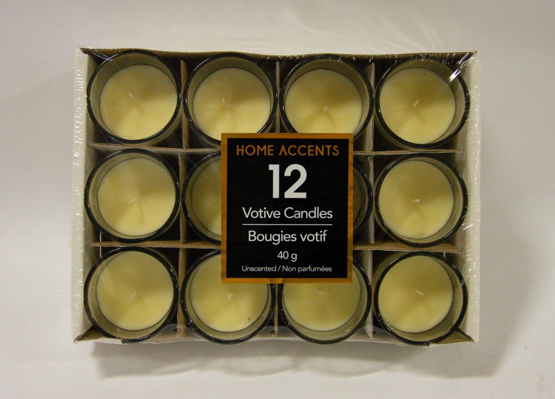 12 HOME ACCENTS VOTIVE CANDLES,UNSCENTED