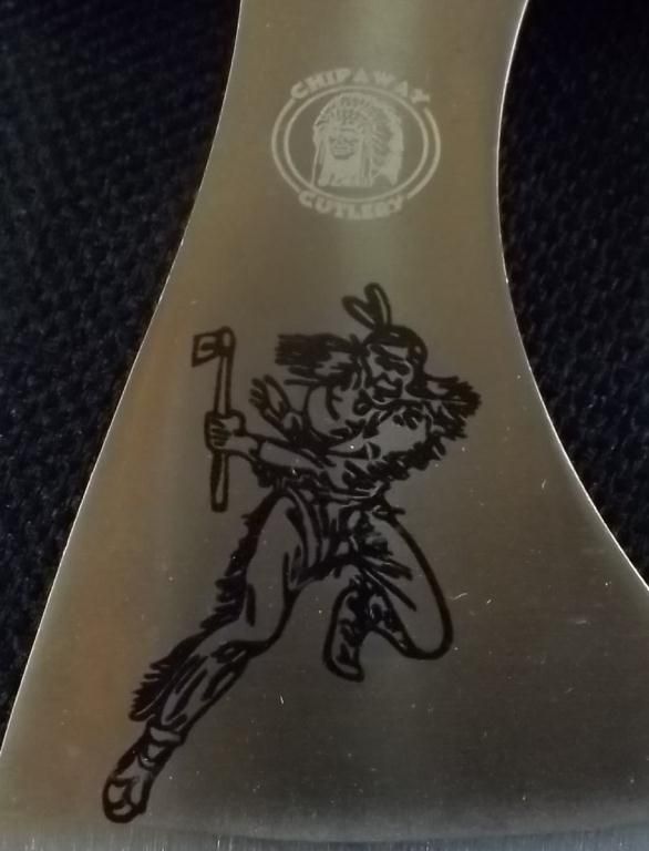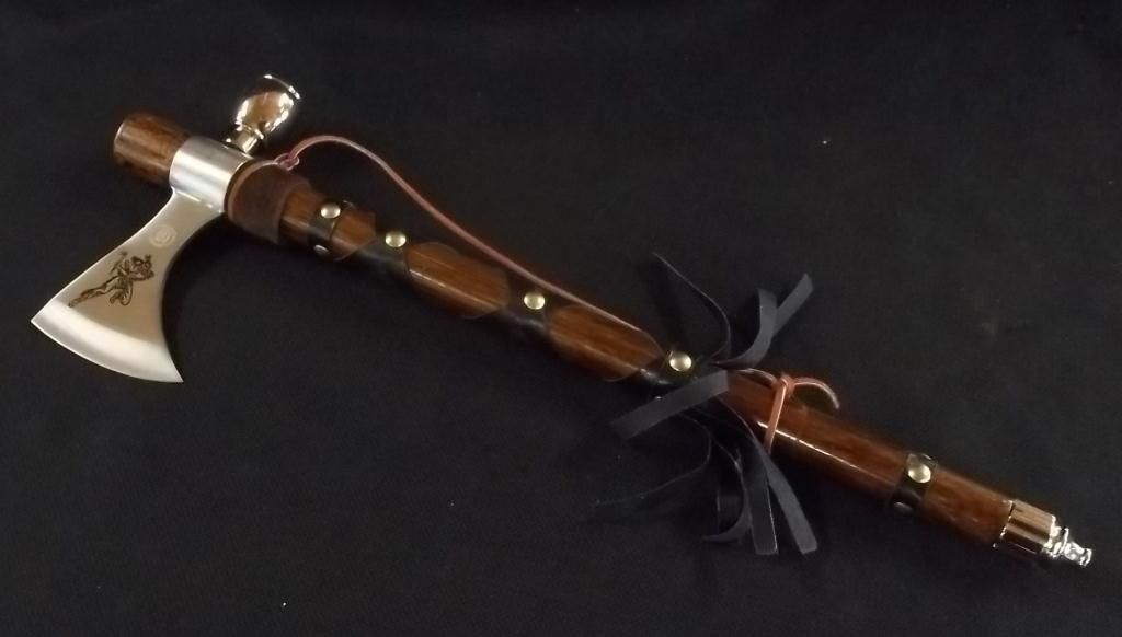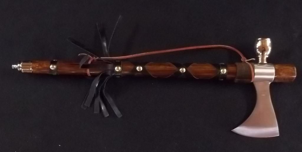 Chipaway Cutlery Blade, Wood Handle with Leather Accents. Metal Bowl and Mouthpiece