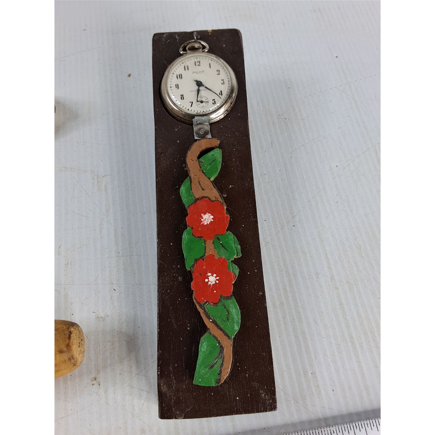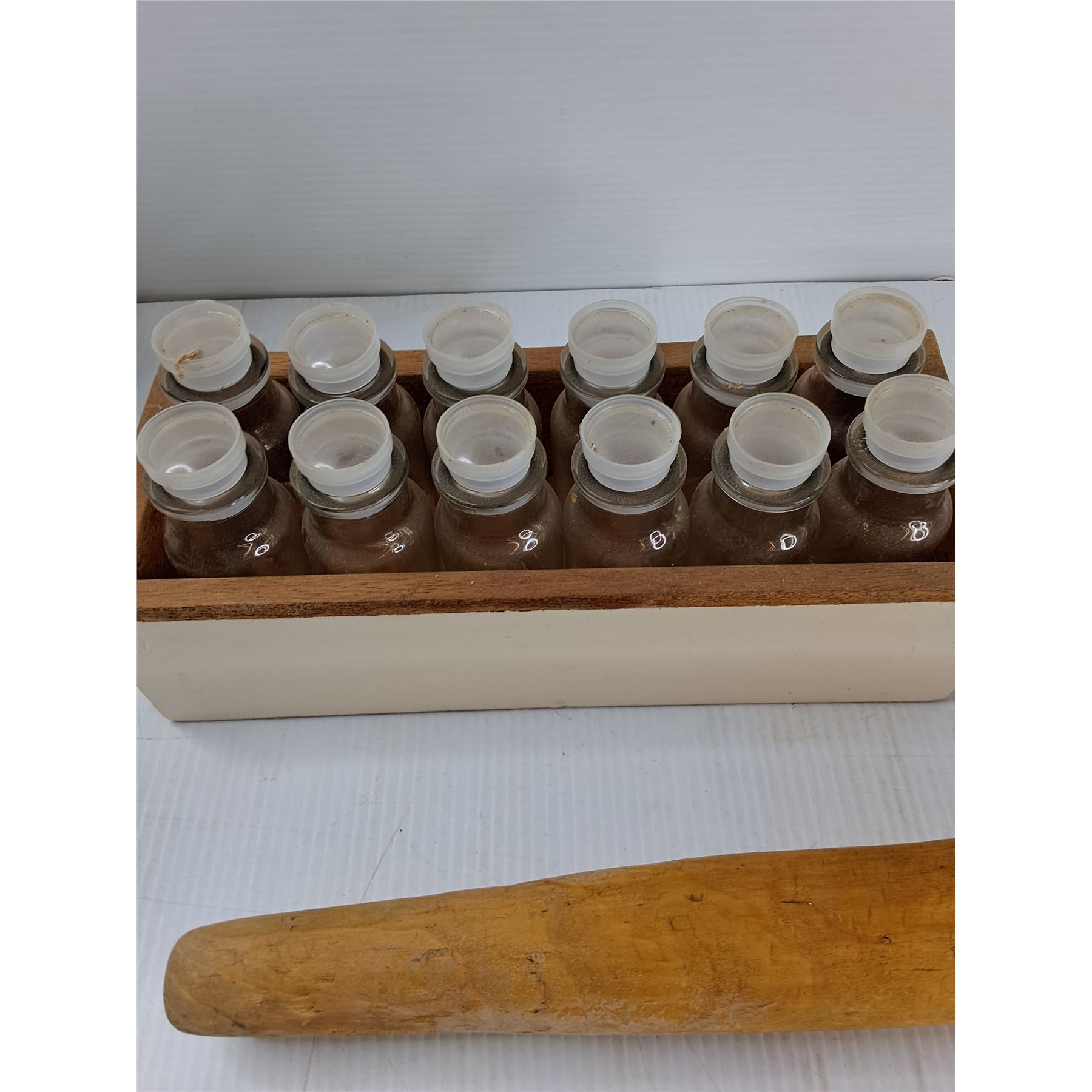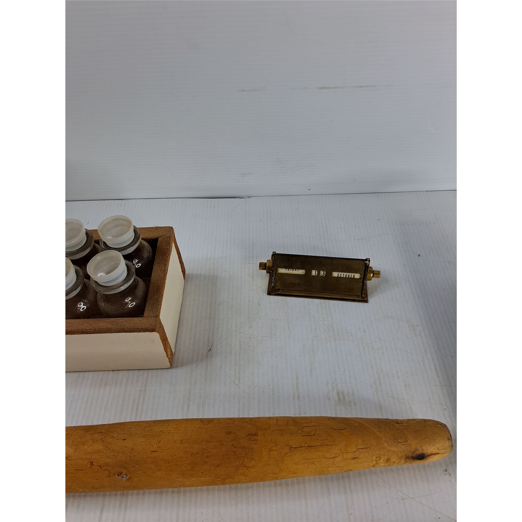 (12) Jars With Holder, Rolling Pin, Clock, Misc