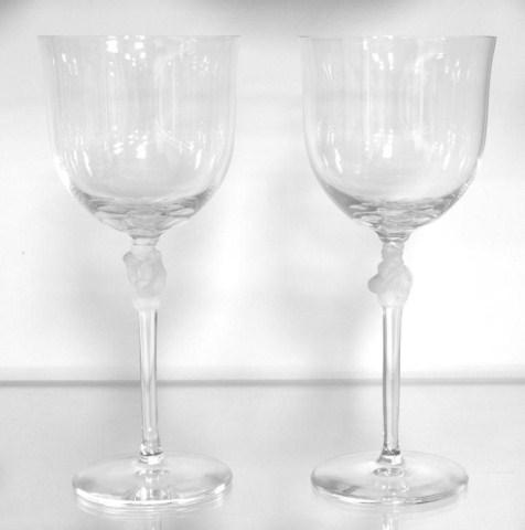 Lalique Roxanne wine glasses measure 7 1/2" h X 3 1/8" dia.
