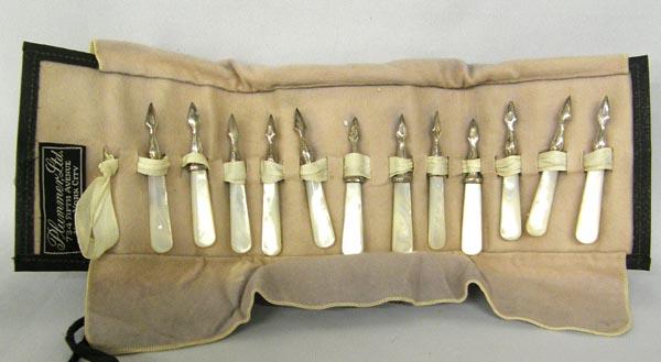 12 MOP and Silverplate Corn Cob Holders in Pouch, from Plummer, Ltd. Fifth Ave., New York City. Pouch measures 13.75''Lx4.5''W, holders measures 3''L. Buyers Pay Actual Shipping and Handling Charges(see terms and conditions for more information).